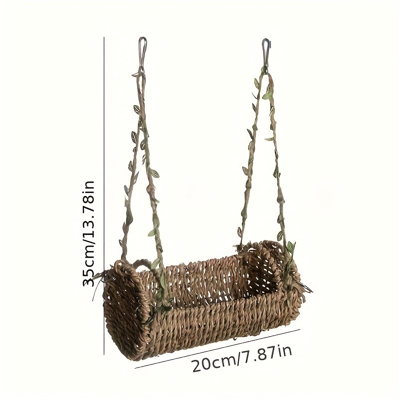 - חומרים טבעיים ובטוחים לחלוטין: נדנדה זו עשויה בעבודת יד מעץ ראטן טבעי ואיכותי, והיא בטוחה לחלוטין לציפורים ללעיסה ולמשחק, מה שמחזק את האינסטינקטים הטבעיים שלהן ומספק סביבה נקייה מכל חומרים מזיקים.