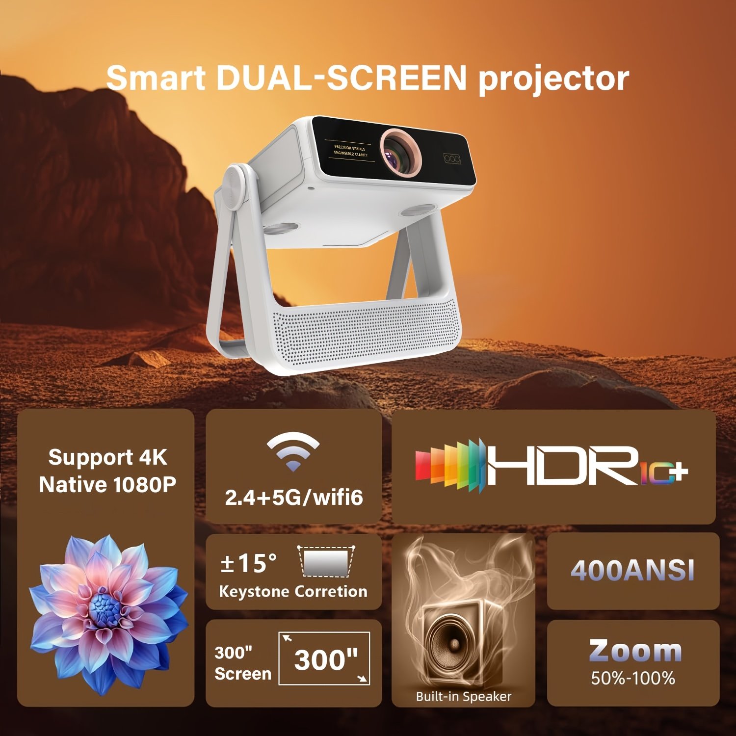 - רזולוציה קולנועית סופר-חדה: תהנה מתמונות חדות ומלאות חיים ברזולוציית 1080P מקורית, עם תמיכה בפענוח תוכן 4K UHD לחוויה ויזואלית העולה על הציפיות בכל פרט.