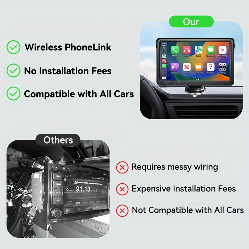 - קישוריות אלחוטית חכמה (Wireless Carplay / Android Auto): התחבר בצורה חלקה לסמארטפון שלך ותיהנה ממפות ניווט, שיחות, הודעות, והמוזיקה האהובה עליך ישירות על המסך, הכל ללא כבלים מציקים. הפוך את נהיגתך לבטוחה ונוחה יותר.