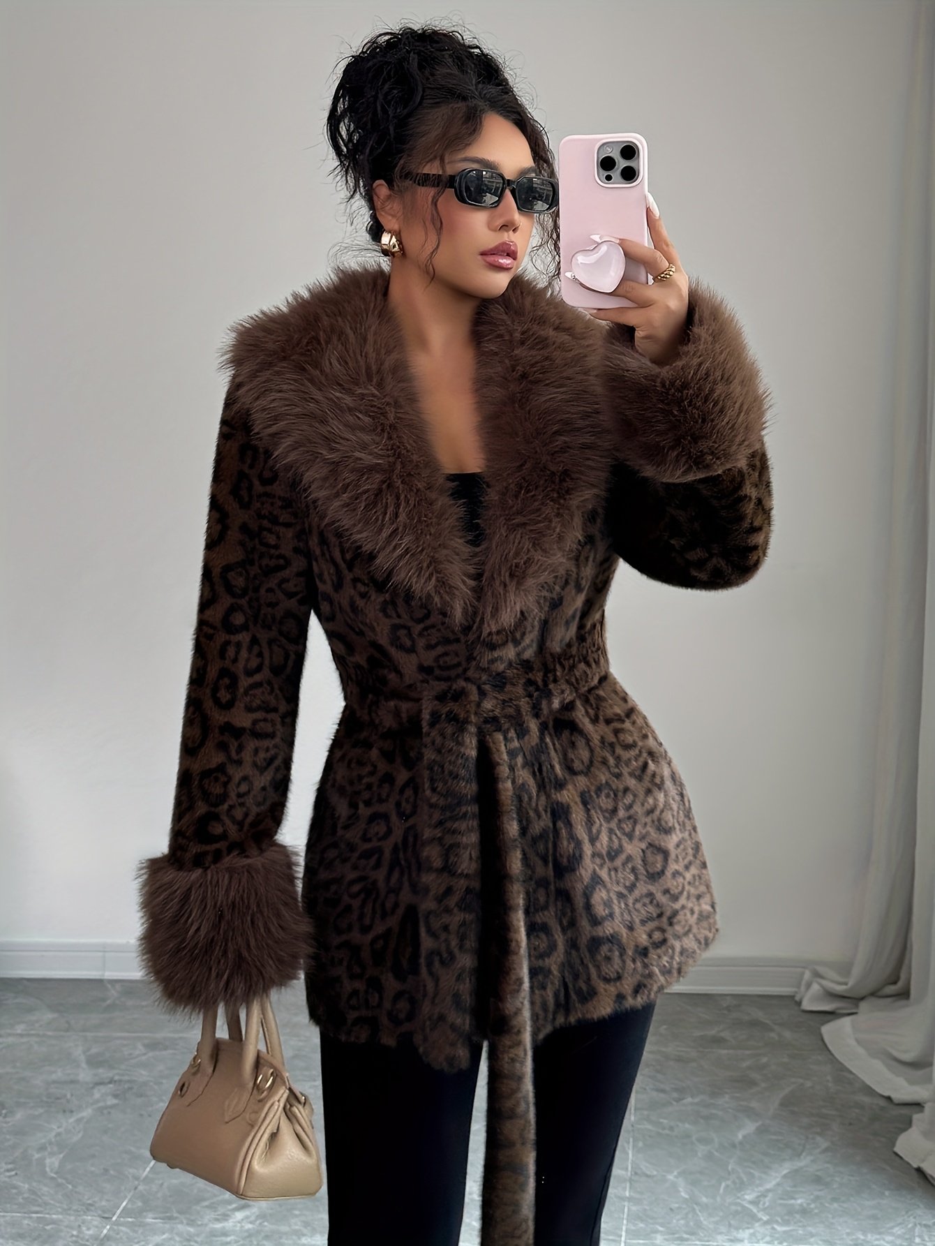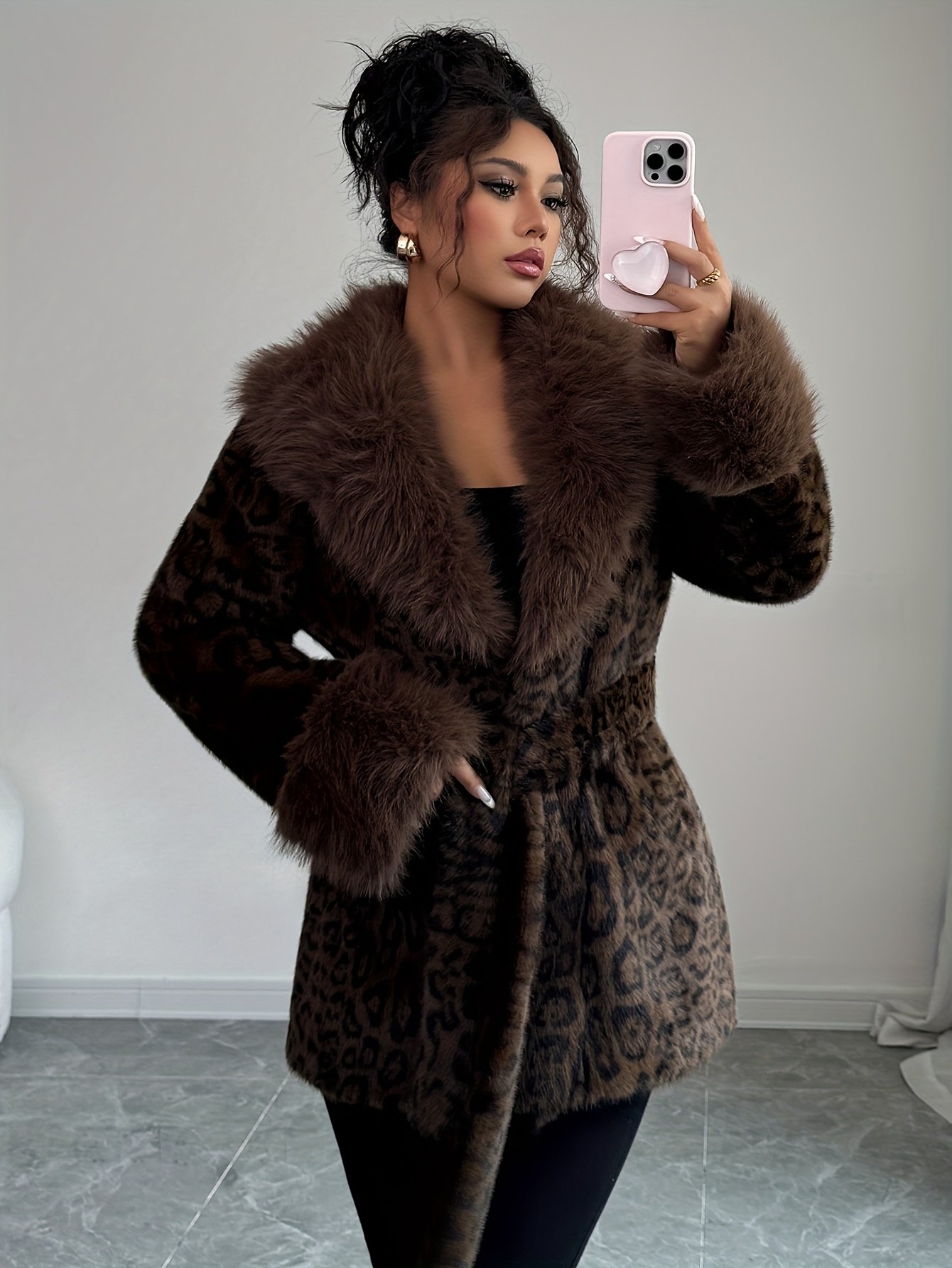 - מגע יוקרתי של פרווה מלאכותית: צווארון ושולי שרוולים מעוטרים בפרווה מלאכותית יוקרתית בהדפס נמר אופנתי, המעניק לך מראה של עידון ויוקרה שאין כמותו.