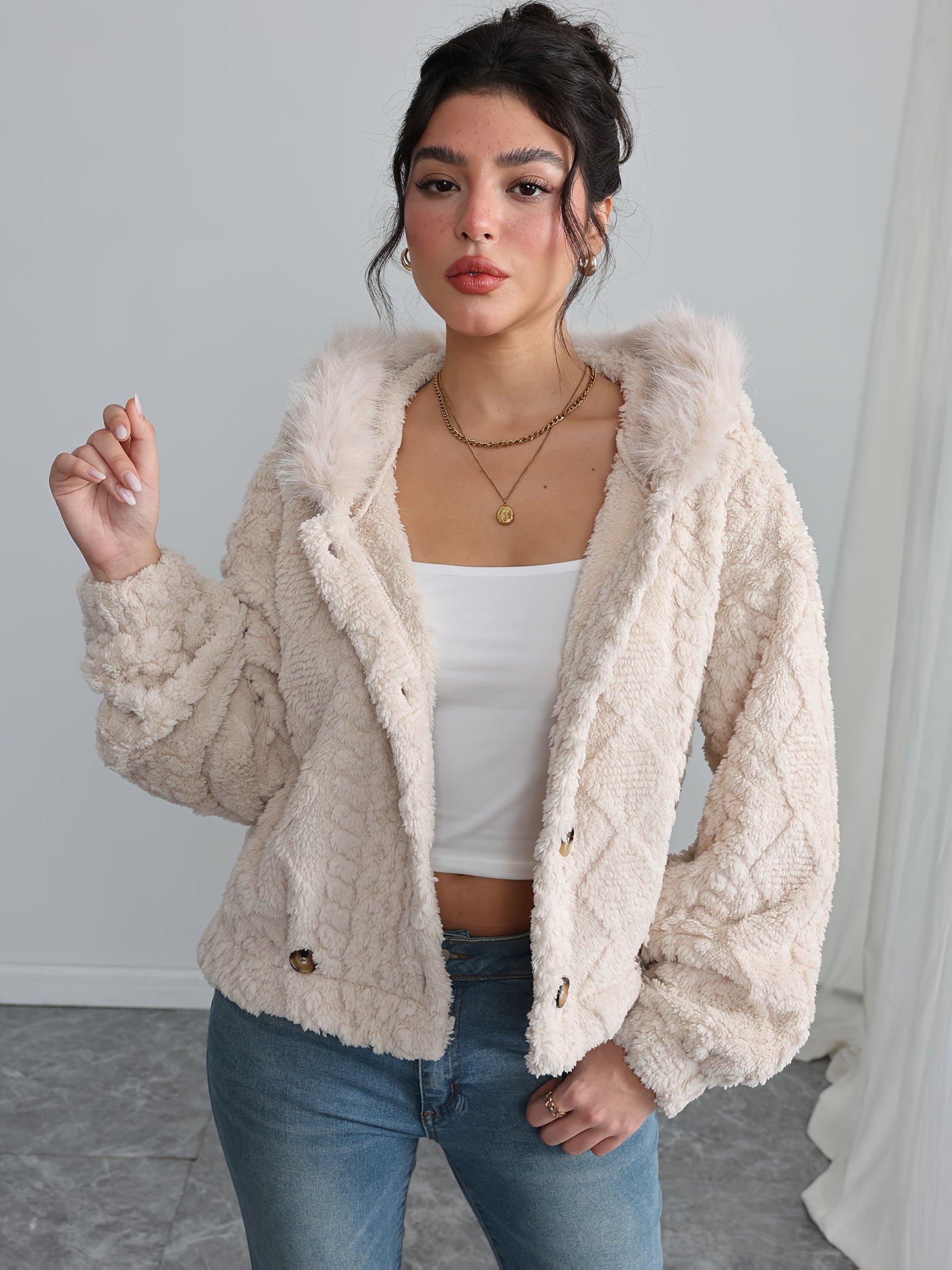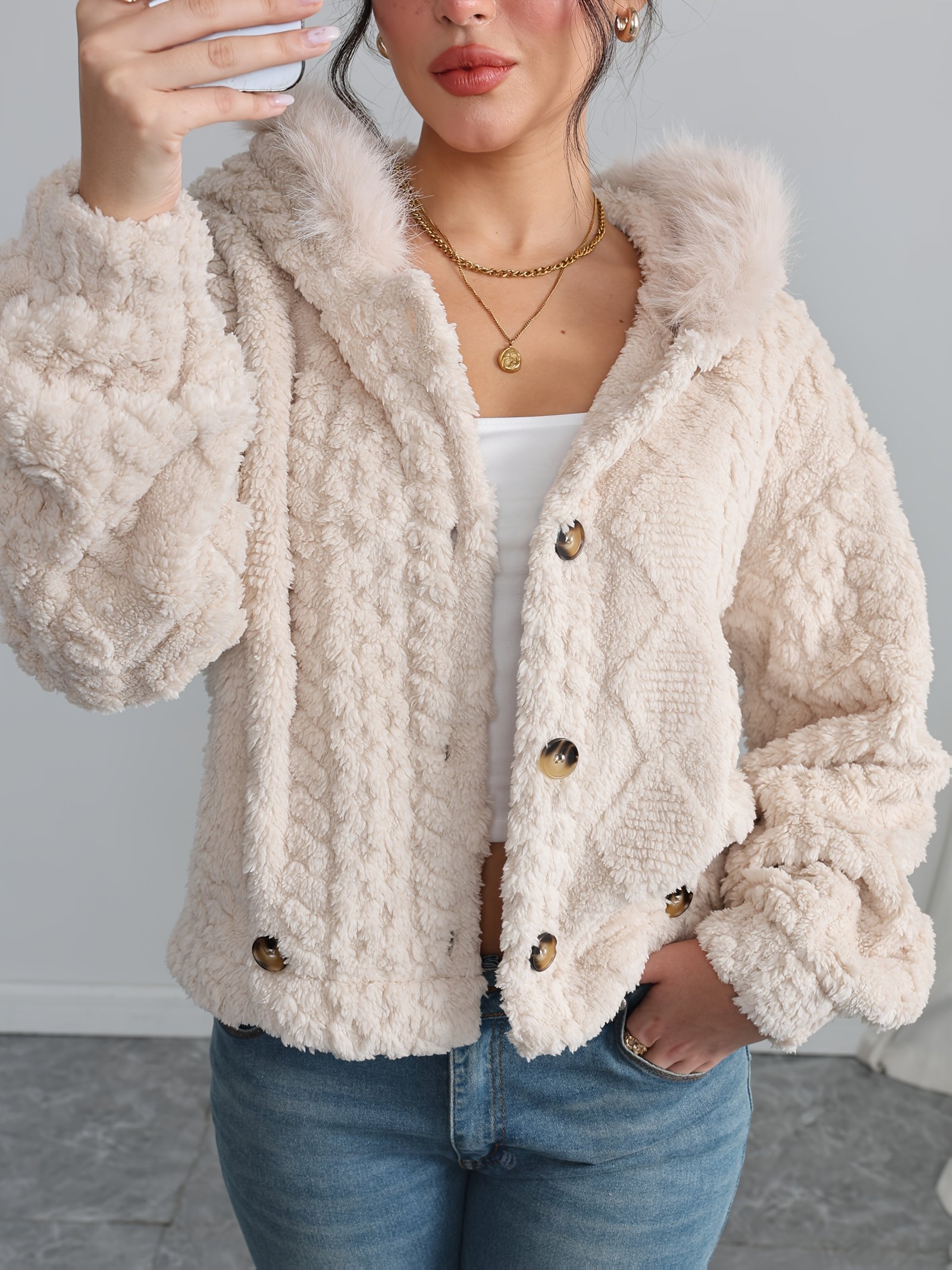 התכונני לקבל את עונות הקור באלגנטיות ללא תחרות וחום שיעטוף את חושייך עם מעיל החורף היוקרתי החדש! מעיל זה אינו רק פריט לבוש, אלא הוא המלווה המושלם שלך לכל אירועי הסתיו והחורף, מעוצב במיוחד כדי להעניק לך נוחות מוחלטת והמראה האלגנטי שמגיע לך. פנקי את עצמך במגע של יוקרה וחום שאינו מתפשר על אלגנטיות.