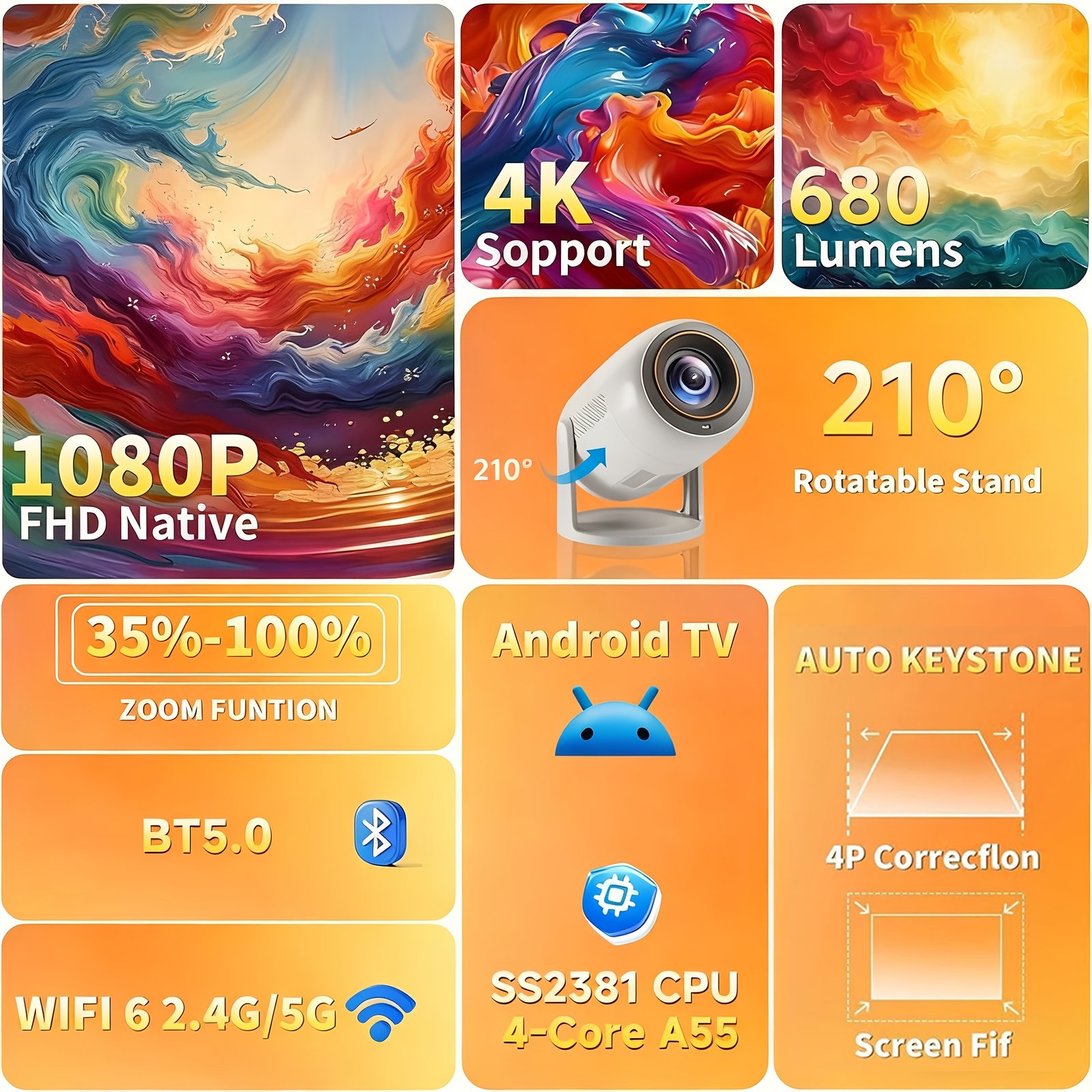 - מערכת הפעלה חכמה עם Android 12.0: היכנס לעולם של אפליקציות ושירותי בידור ישירות מהמקרן, עם גישה קלה לאינטרנט באמצעות Wi-Fi מובנה, כדי להזרים את הסרטים והסדרות המועדפים עליך ללא מאמץ.