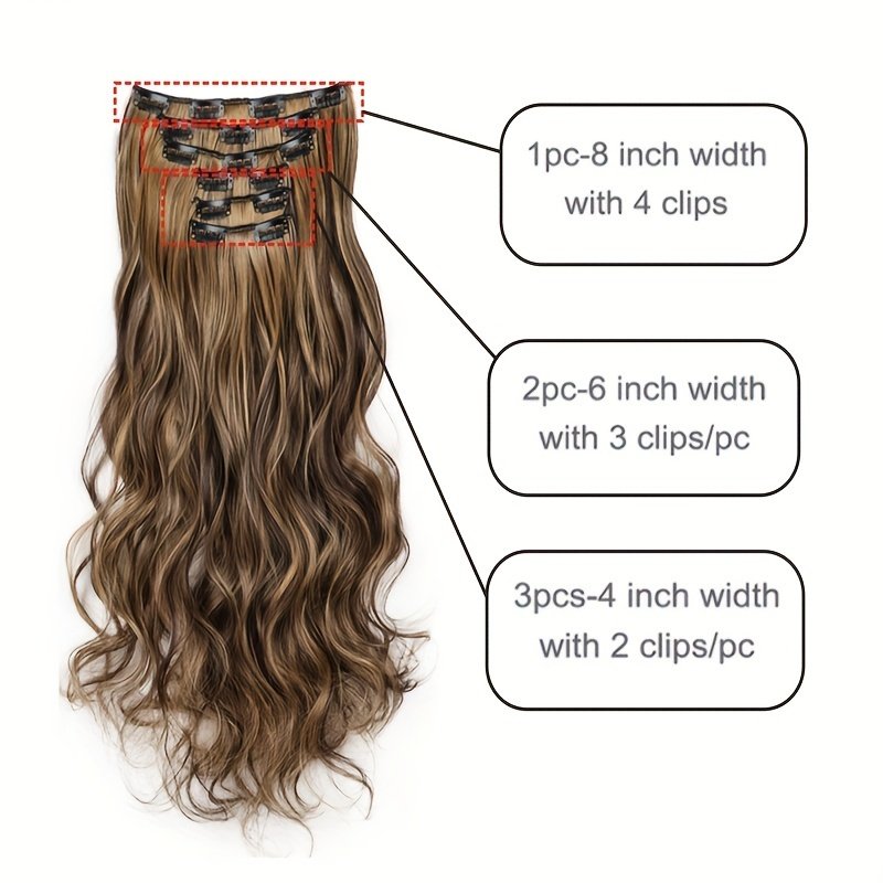 - שינוי מיידי ומהמם: קבלי נפח ואורך מיידיים עם הסט הזה המורכב מ-6 חלקים, מצויד ב-16 קליפסים חזקים המפוזרים בקפידה כדי להבטיח יציבות מושלמת וכיסוי מלא, מה שיעניק לך מראה טבעי שאי אפשר לעמוד בפניו.
