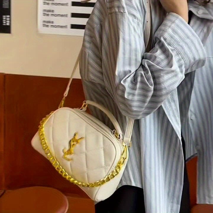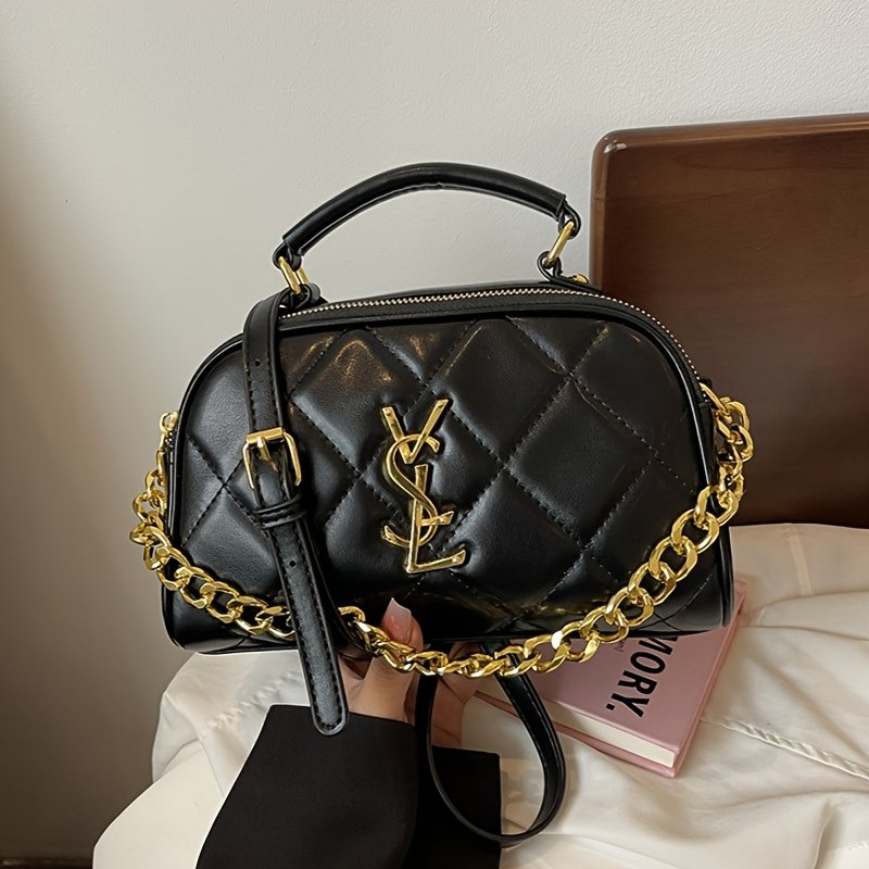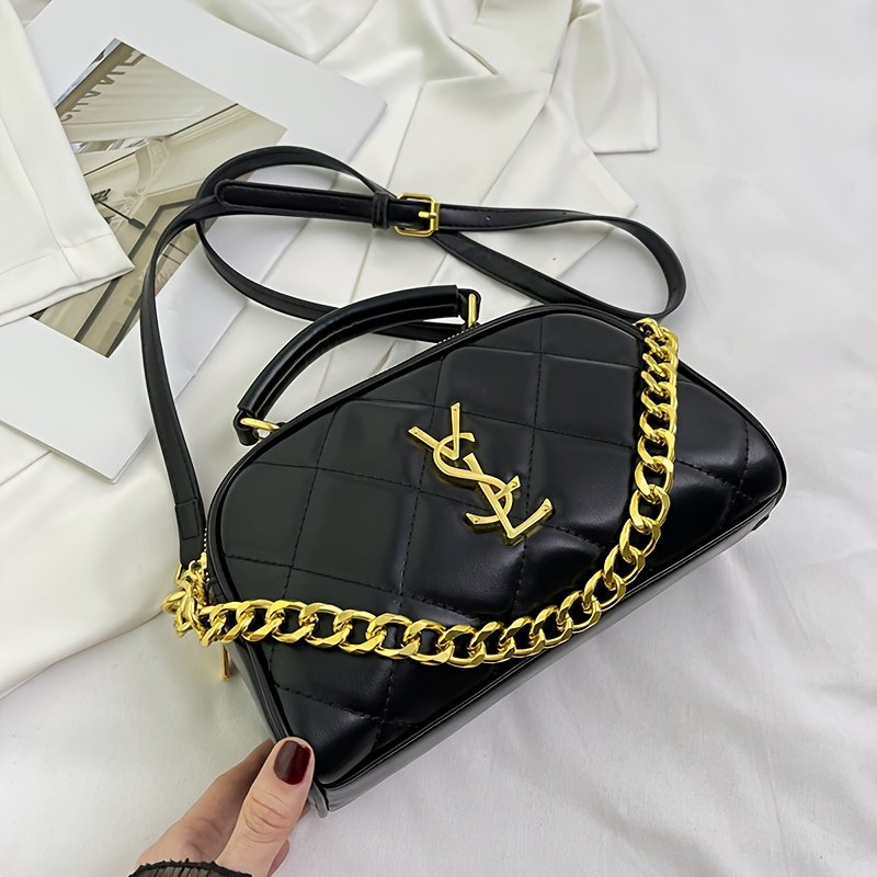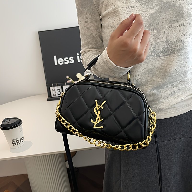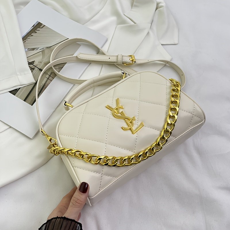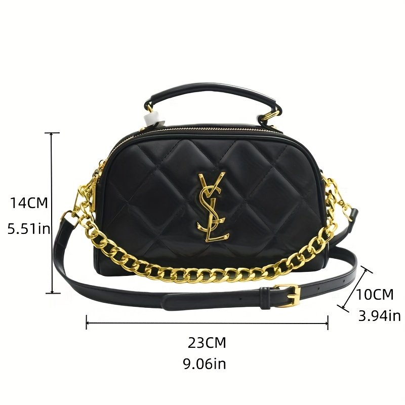 - נגיעות זהב מבריקות: התיק מעוטר ברצועה אלגנטית של שרשראות זהב שזורות, וחלקי מתכת יוקרתיים בצבע זהב מבריק, כדי לשקף יוקרה בכל פינה.