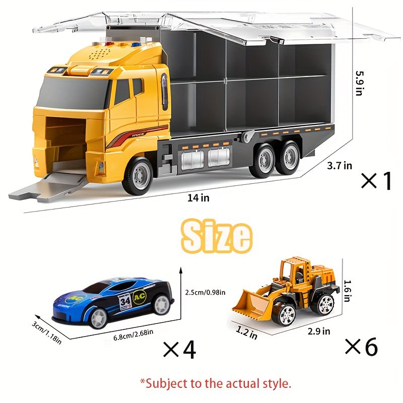 - קיבולת עצומה: תוכנן לשאת עד 12 מכוניות קטנות! ילדכם יכול לאסוף את המכוניות האהובות עליו ולהעביר אותן בהרפתקאות אינסופיות, מה שמחזק את כישורי הסדר והארגון.