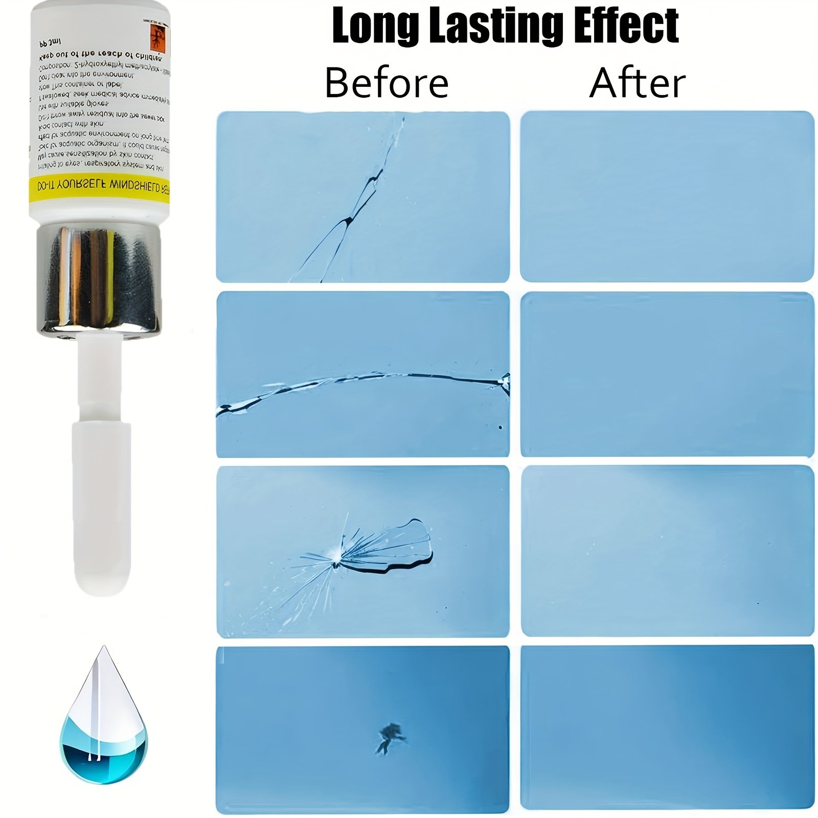 - תיקון מיידי ומהיר: להתראות להמתנה ארוכה! מוצר זה מטפל במהירות שיא בסדקים ושברים קטנים, כך שהנהיגה שלכם חוזרת להיות בטוחה וברורה בזמן הקצר ביותר.