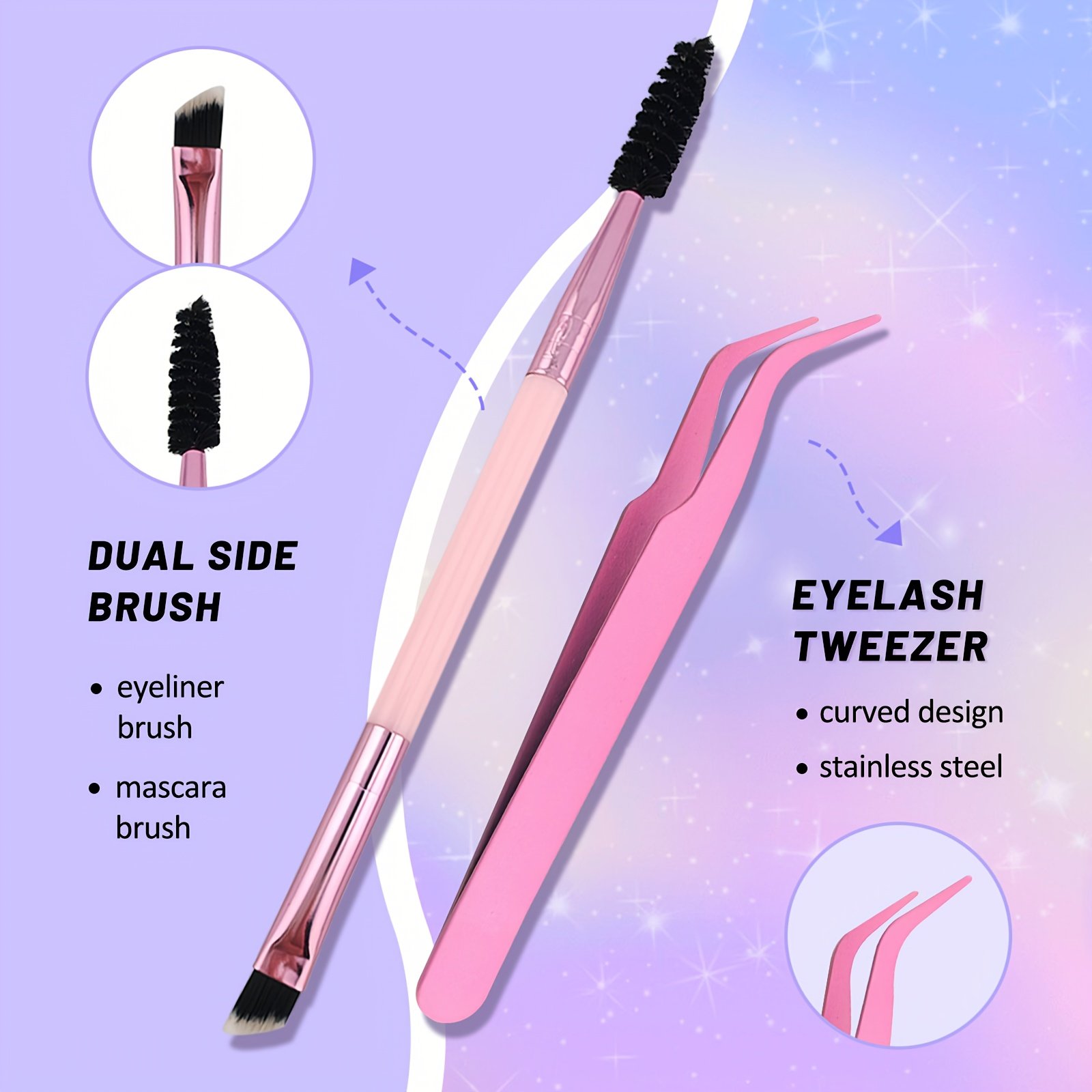 • סט מקיף 5 ב-1 למקצועיות ביתית: כולל כל מה שאת צריכה כדי להרכיב את הריסים שלך בעצמך בקלות ובמקצועיות: דבק דו-ראשי חזק ועמיד למים, מסיר ריסים יעיל, פינצטה מדויקת, ומברשת איפור דו-ראשית להתאמה מושלמת.
