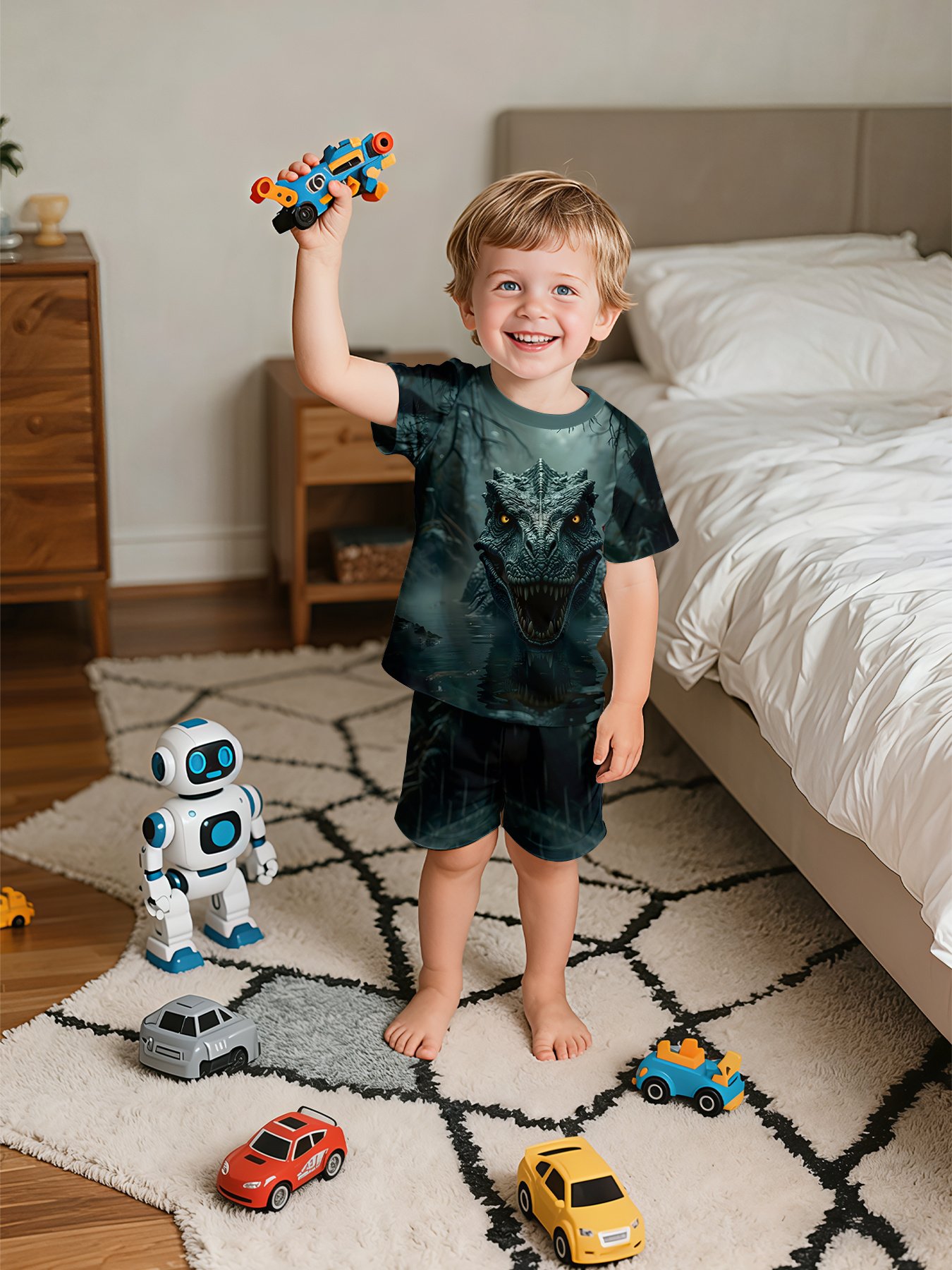 - נוחות אולטימטיבית ותחושה רכה: סט זה עשוי 100% פוליאסטר איכותי, ומעניק גמישות קלה ותחושה נעימה על העור, מה שמבטיח נוחות מירבית לילדכם בין אם הוא ישן או נהנה ממשחק לאורך כל היום.