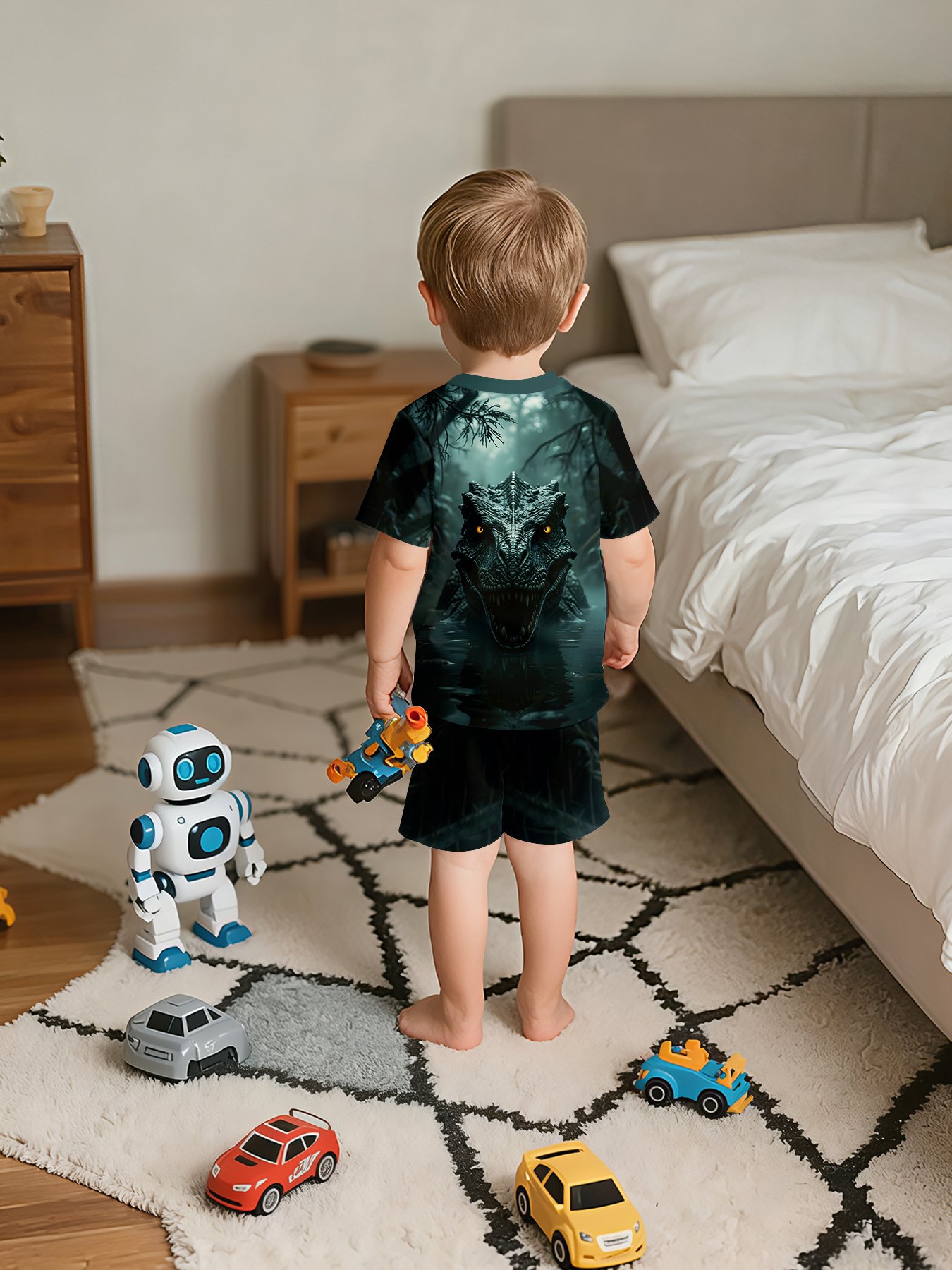 גלו את המלווה המושלם לחלומות ילדיכם ולהרפתקאותיהם בבית! אנו מציגים לכם סט פיג'מת בנים בעיצוב תלת-ממדי, שתוכנן במיוחד כדי להעניק לקטנכם את מירב הנוחות והסטייל. תנו להם לצלול לעולם מלא דמיון עם עיצוב מפלצות העולמות הערפיליים המסתורי בצבע אפור כהה, בעודם נהנים משינה שקטה ונוחה או מזמן משחק שופע פעילות בעונות האביב והקיץ.