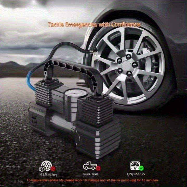 - מהירות שיא וביצועים אדירים: מצויד במנוע כפול צילינדרים חזק במיוחד, המבטיח ניפוח צמיגי רכבכם, משאיתכם או אופנועכם בזמן שיא וביעילות ללא תחרות, כדי שתחזרו לדרככם במהירות ובבטחה.