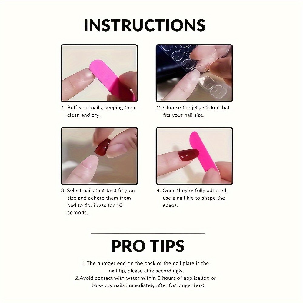 - קלות שימוש אולטימטיבית: מערכת הלחיצה החדשנית (Press-On) עם דבק ג'לי דביק מבטיחה התקנה והסרה קלות ומהירות, ללא כל טרחה או נזק לציפורנייך הטבעיות.