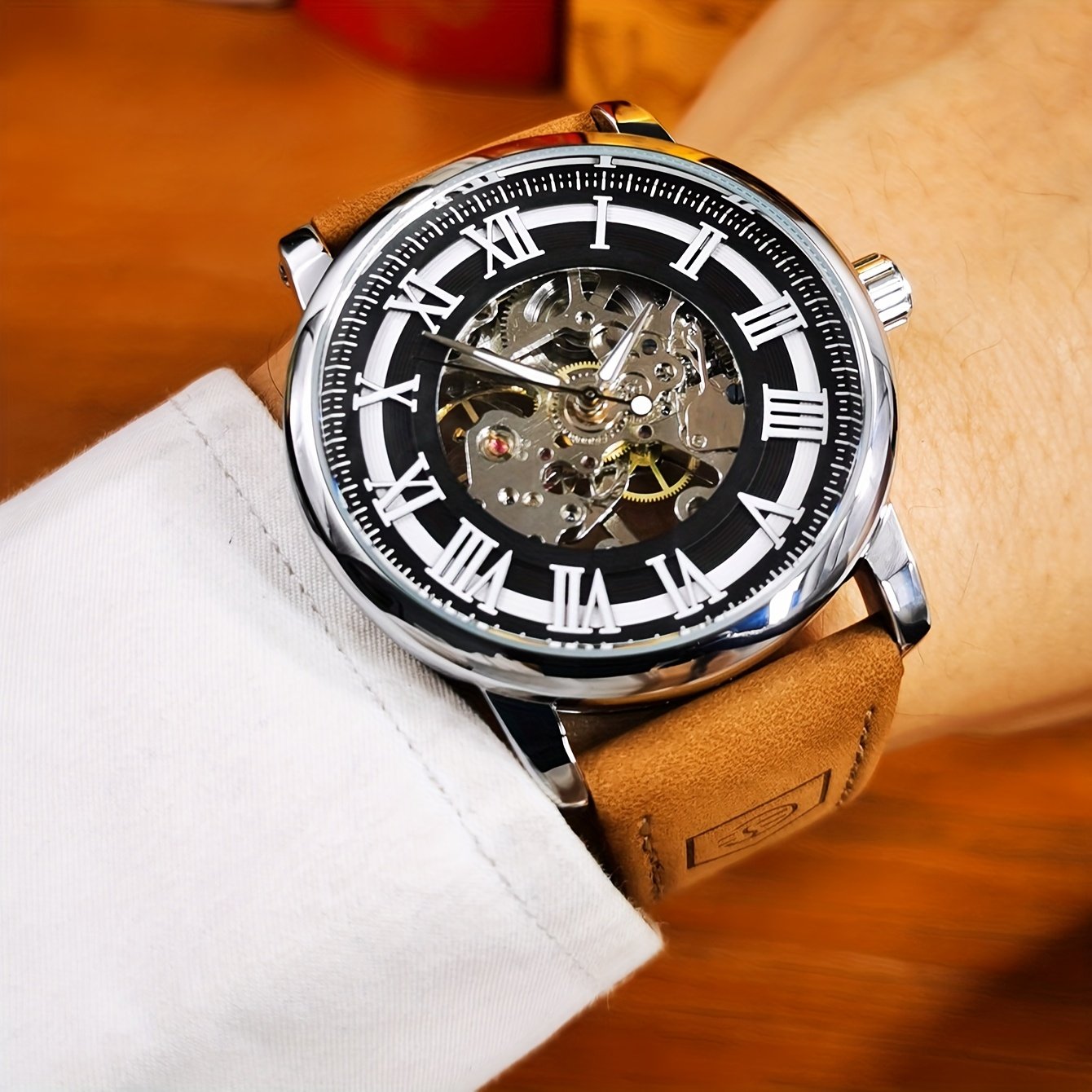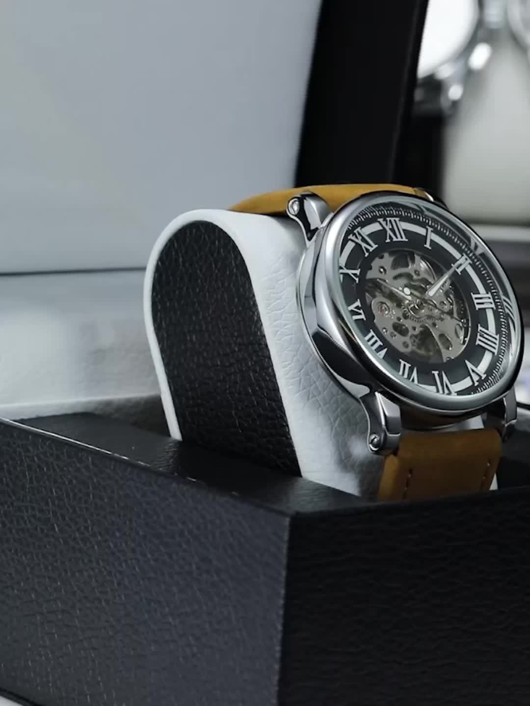 - עיצוב שלד חשוף ומהפנט: צפו בלב השעון פועם לחיים, כאשר גלגלי השיניים המדויקים והרכיבים הפנימיים שלו נחשפים בתצוגה אמנותית עוצרת נשימה. זהו לא רק שעון, אלא יצירת אמנות נעה על פרק כף היד שלכם.