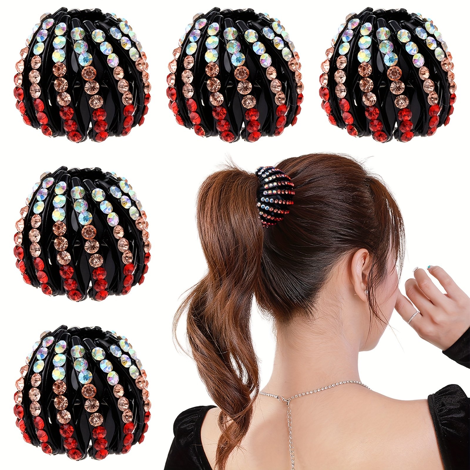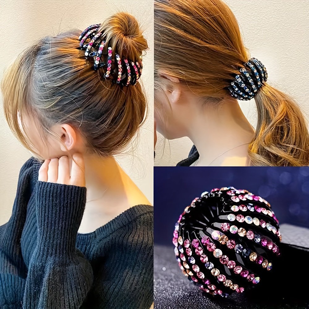 - עיצוב ייחודי שובה לב: תיהני מעיצוב 'קן הציפור' האלגנטי המשובץ באבני קריסטל מנצנצות המשקפות את האור בכישרון, כדי להוסיף לשיערך זוהר וקסם ללא תחרות.