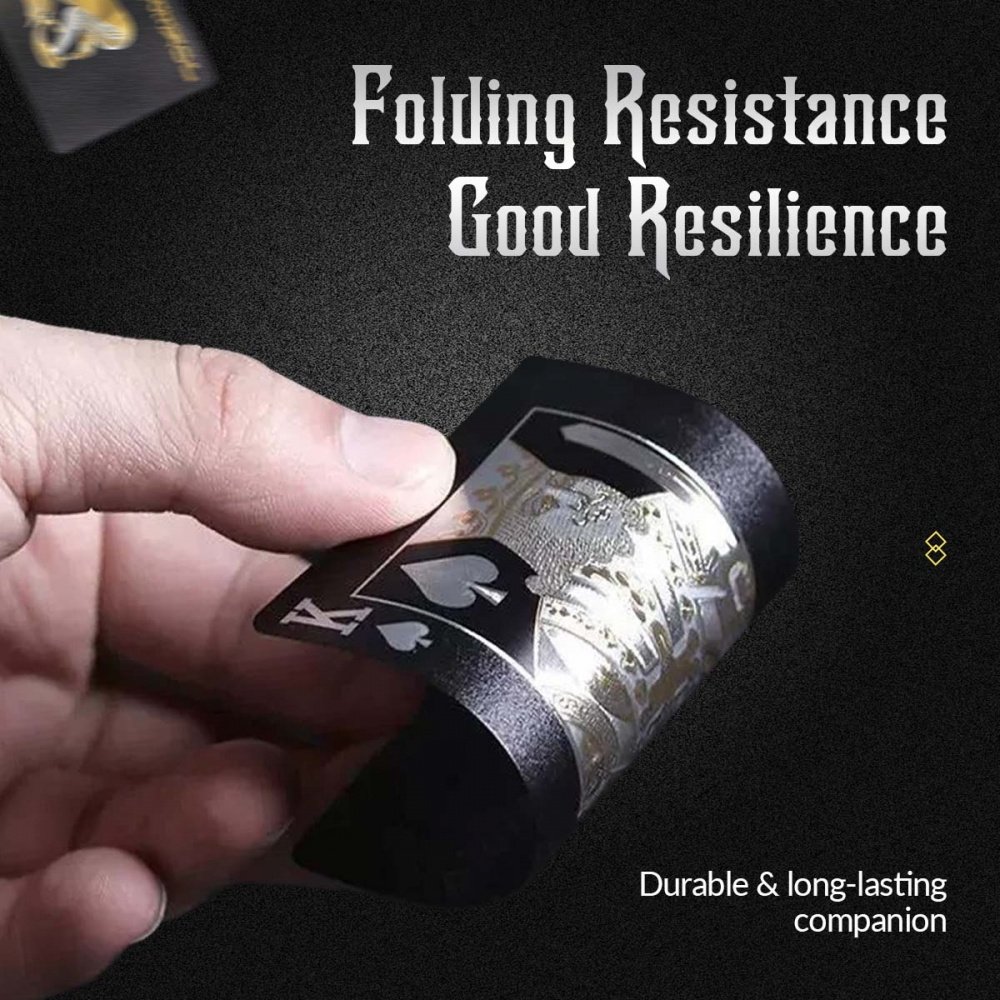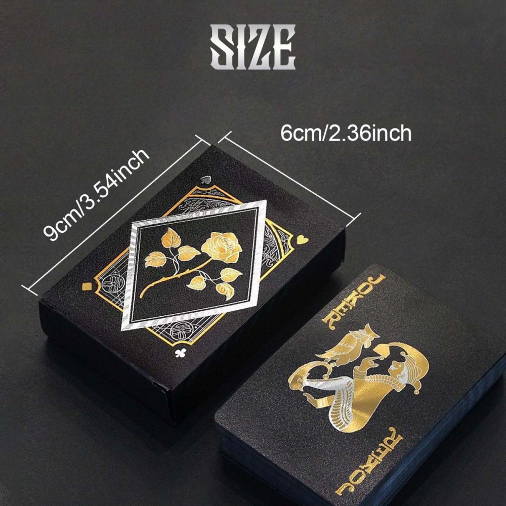 - עיצוב שחור אלגנטי וייחודי: הוסיפו נופך של יוקרה ועידון לשולחן שלכם. הצבע השחור העמוק מעניק לקלפים מראה מקצועי ואטרקטיבי, מה שהופך אותם למתאימים באופן מושלם לכל אירוע, החל מטורנירים רציניים ועד לילות בילוי.