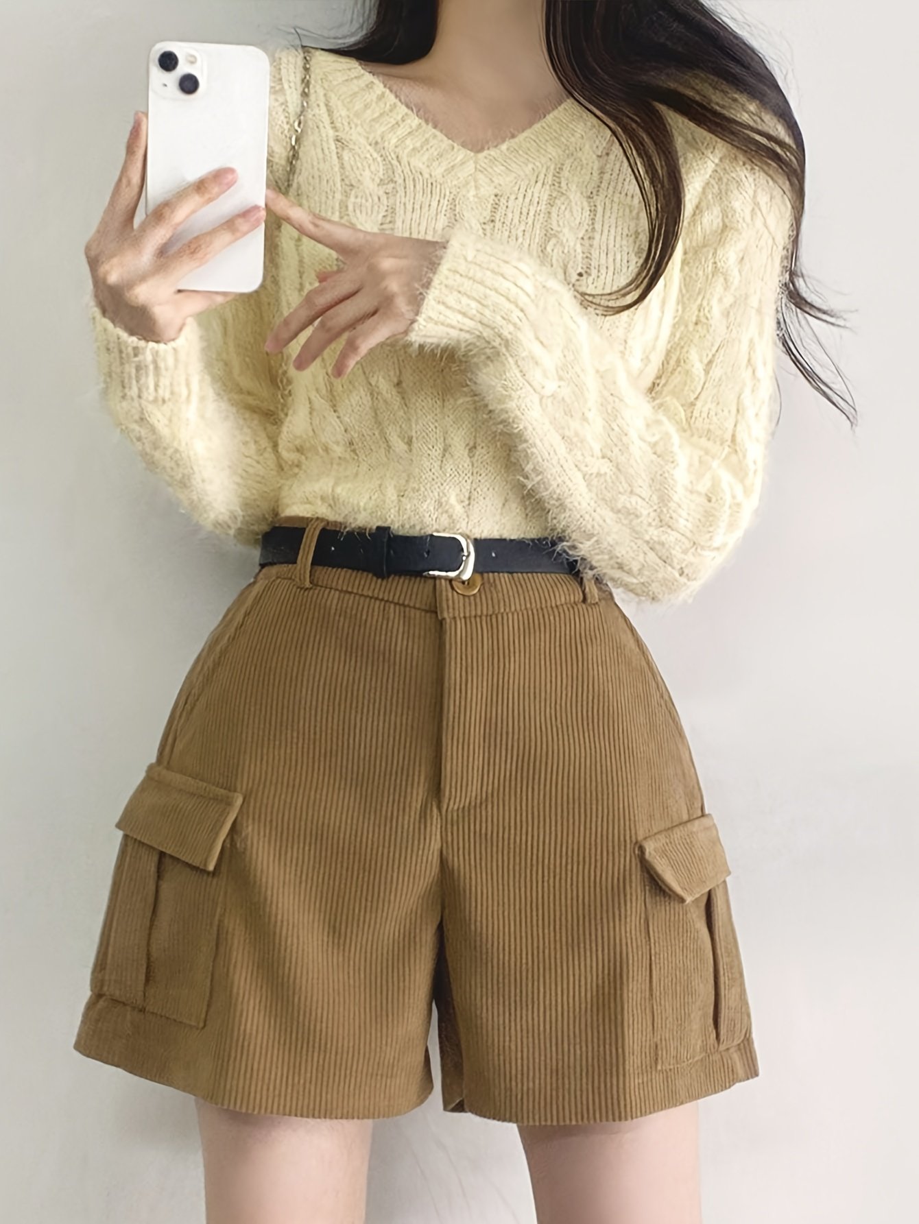 - עיצוב צווארון וי: מוסיף נופך של אלגנטיות וקסם למראה שלך, ומבליט את יופי צווארך בסגנון מודרני ואלגנטי המשתלב עם מגוון אביזרים.