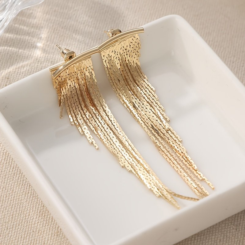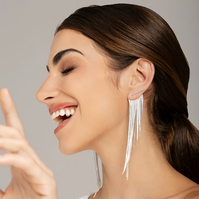 - עיצוב ייחודי ומושך: מתאפיינים בעיצובם הארוך ובגדילים המתכתיים הזורמים, המעניקים נופך של נשיות נועזת ויוקרה אלגנטית, מושלמים לאישה המודרנית המחפשת ייחודיות.