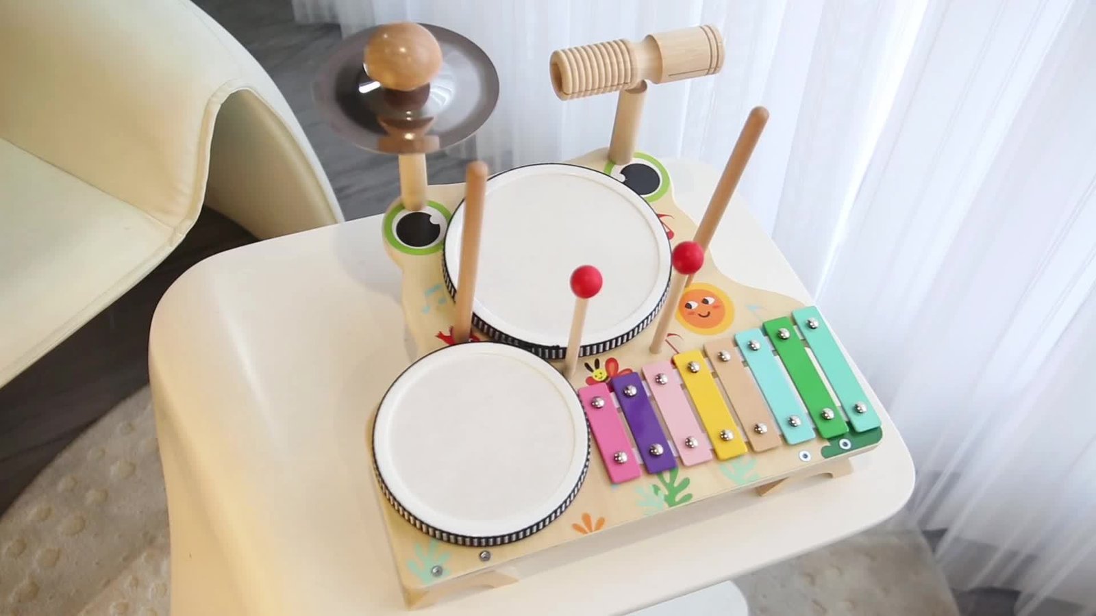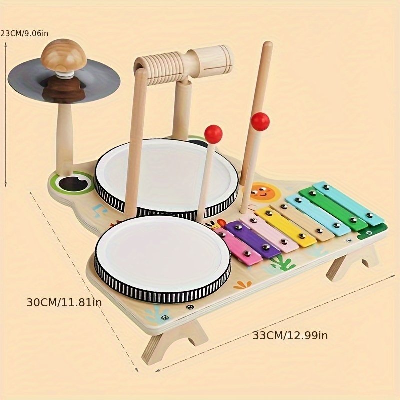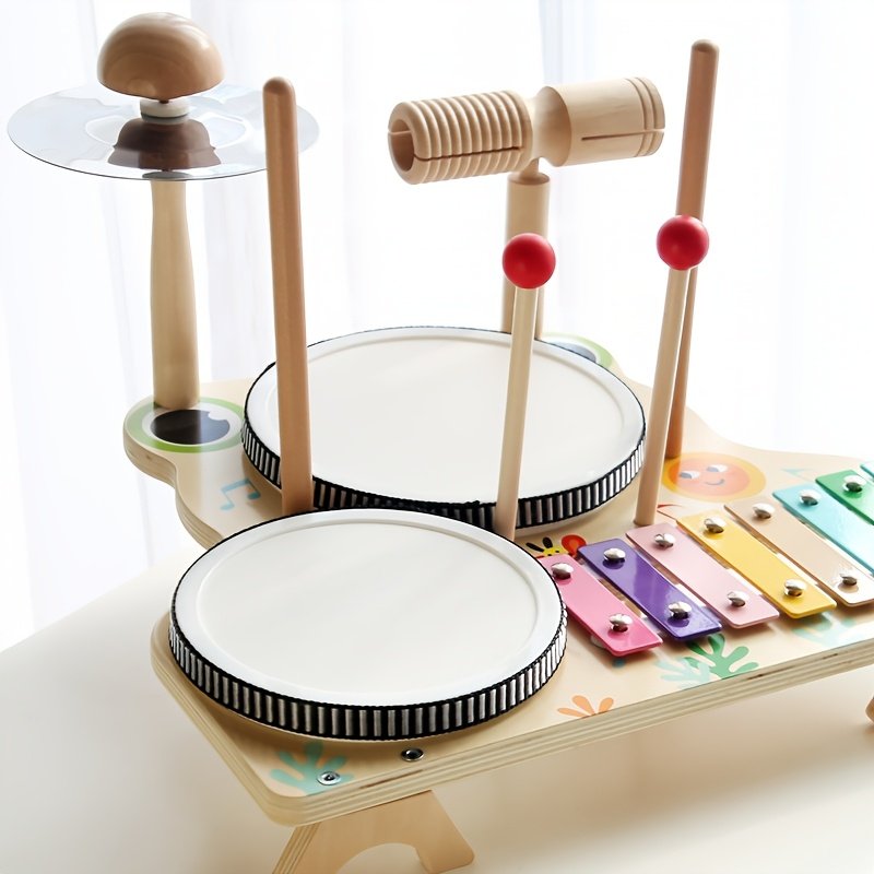 - מערכת מוזיקלית שלמה: לא מוגבל רק לקסילופון, אלא כולל גם תופים קצביים, מצילות ומקל הקשה (מאיילט), כדי להעניק לילדכם תזמורת קטנה בידיים.