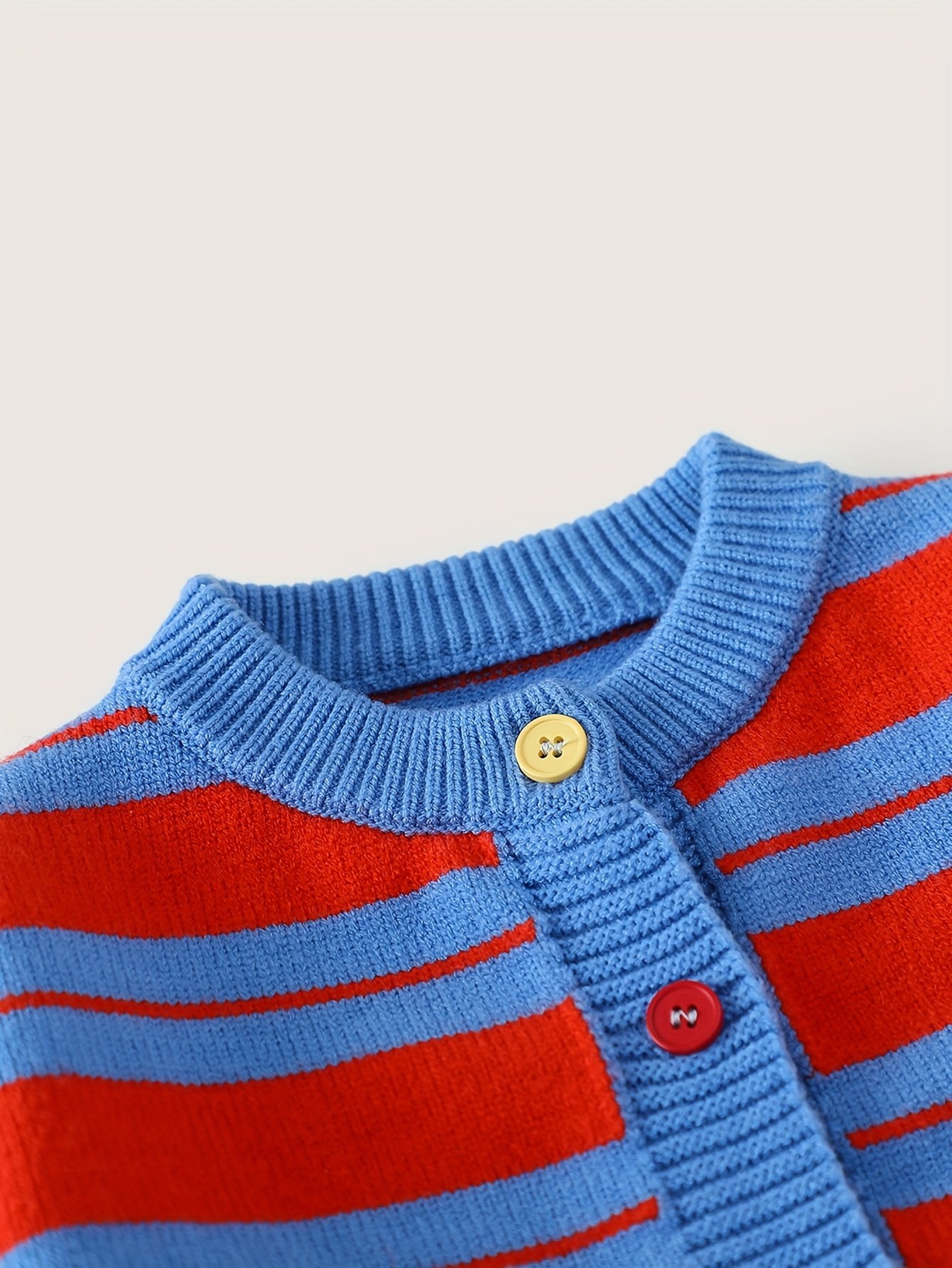- עיצוב אופנתי ומושך: הקרדיגן מתהדר בשילוב נפלא של צבעי אדום וכחול בעיצוב מפוספס ואלגנטי, המעניק לילדך מראה ייחודי ועכשווי המתאים למגוון אירועים.