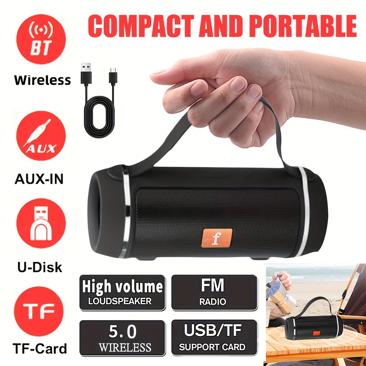 - סוללה עמידה לאורך זמן: מצויד בסוללת ליתיום חזקה ונטענת (סדרת 18650) שמבטיחה לך שעות ארוכות של הנאה רציפה ממוזיקה ובידור מבלי שתצטרך לדאוג לטעינה תכופה.