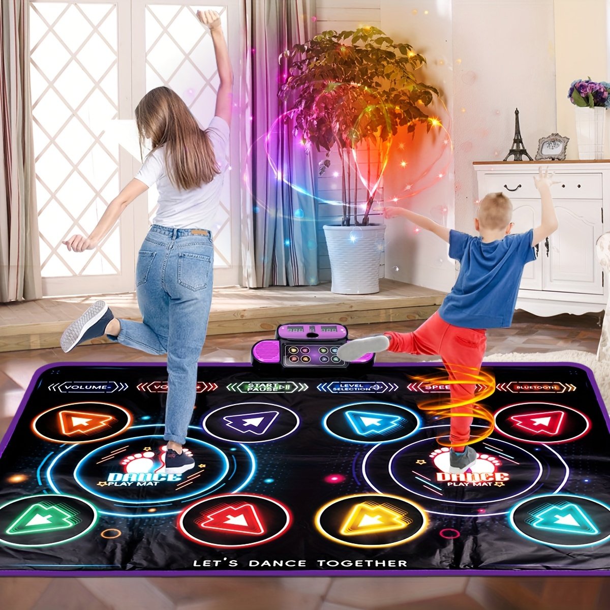 - חוויה אינטראקטיבית מרשימה: תנו לאורות הצבעוניים והתוססים להנחות את ילדכם דרך צעדי הריקוד שלו, וליצור סביבת משחק מעוררת ויזואלית ושמיעתית המעודדת אינטראקציה ופיתוח קצב.