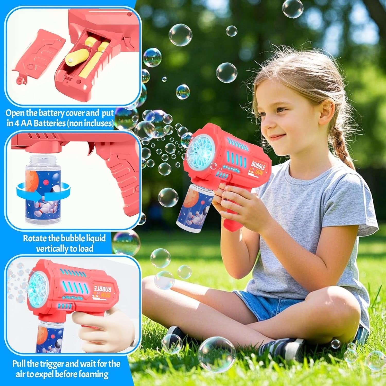 - מוכנות קלה לכיף: לחוויה מהנה ומיידית, כל שעליכם לעשות הוא להוסיף את נוזל הבועות המועדף עליכם ולהכין את הסוללות, וצפו בקסם מתגלה לנגד עיניכם תוך רגעים.