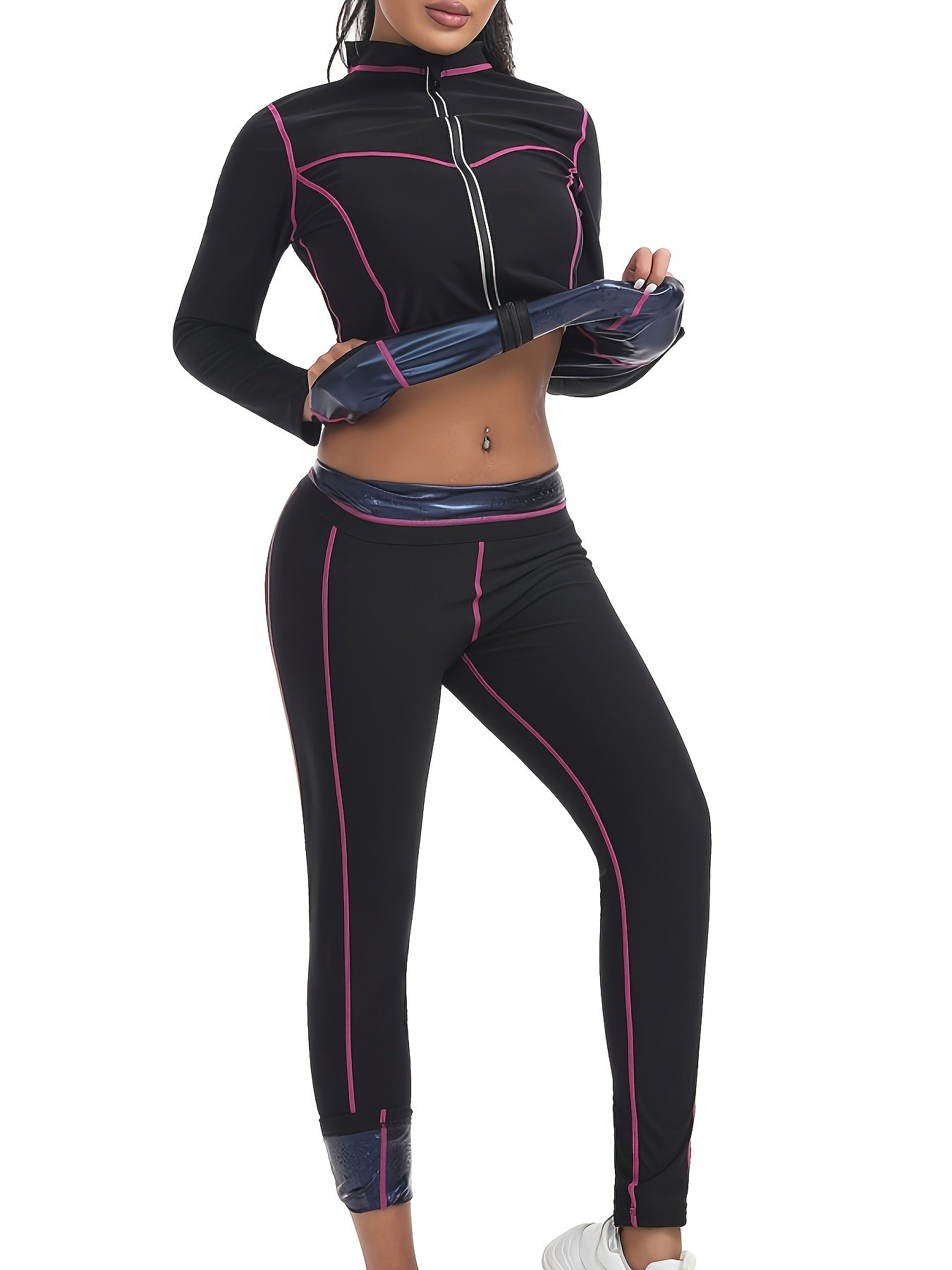 - עיצוב אופנתי ומושך: הסט מתאפיין בדוגמת "קולור בלוק" (Color Block) מושכת ובפרטי רוכסן מסוגננים בחלק העליון, כדי להעניק לך מראה ספורטיבי עכשווי ומיוחד שמושך מבטים ומוסיף חיוניות לאימונים שלך.