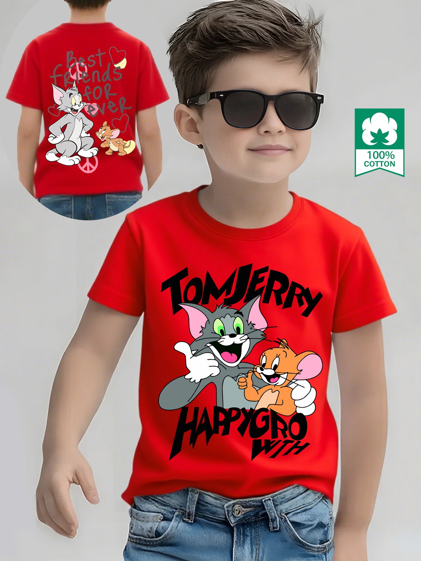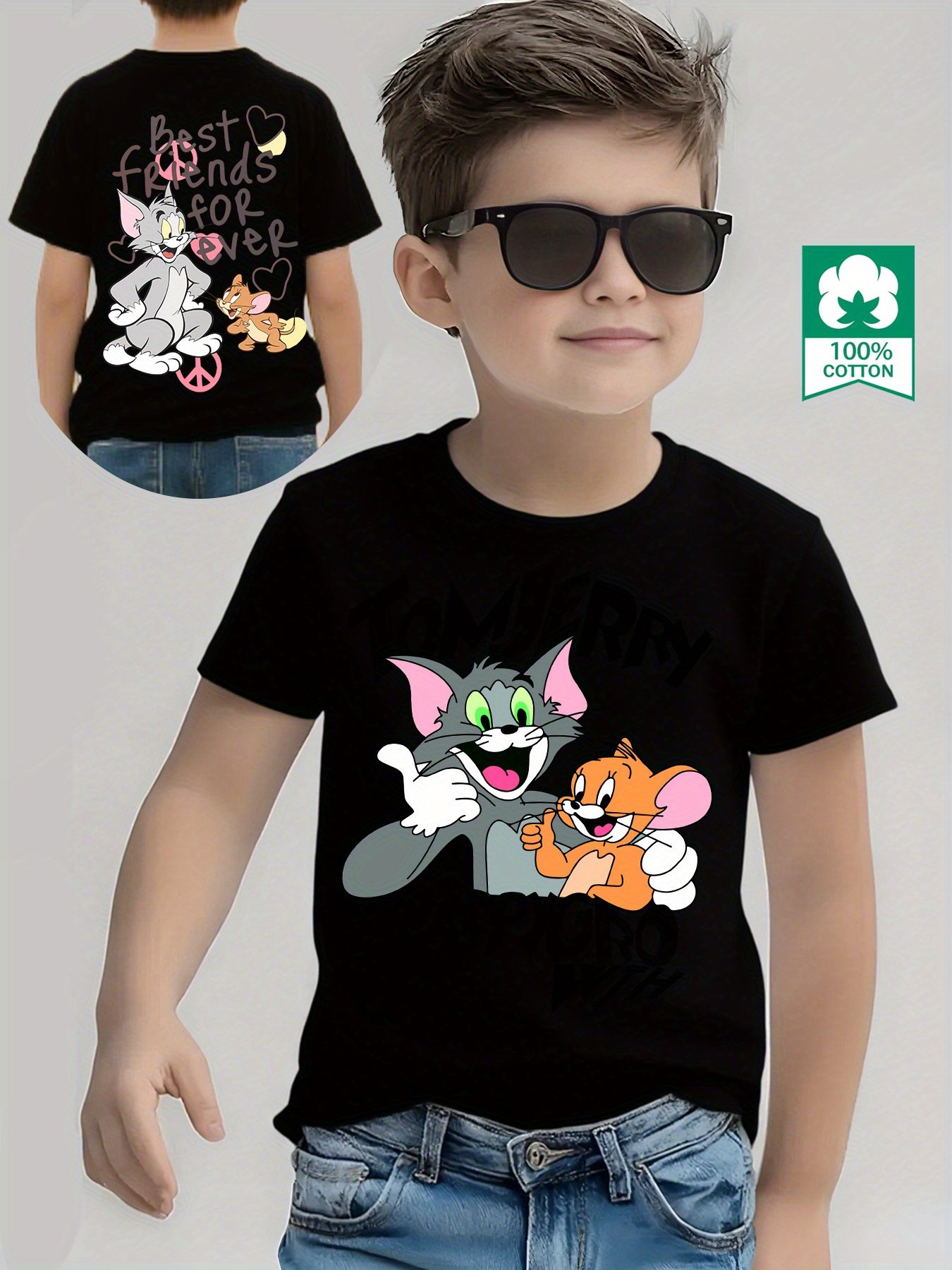 • עיצוב מצויר מקסים: חולצת הטי כוללת הדפסים מצוירים מלאי חיים מקדימה ומאחור (כמו טום וג'רי), מה שמוסיף נופך של שמחה וכיף למראה הקטנטן שלכם והופך אותו למרכז תשומת הלב.