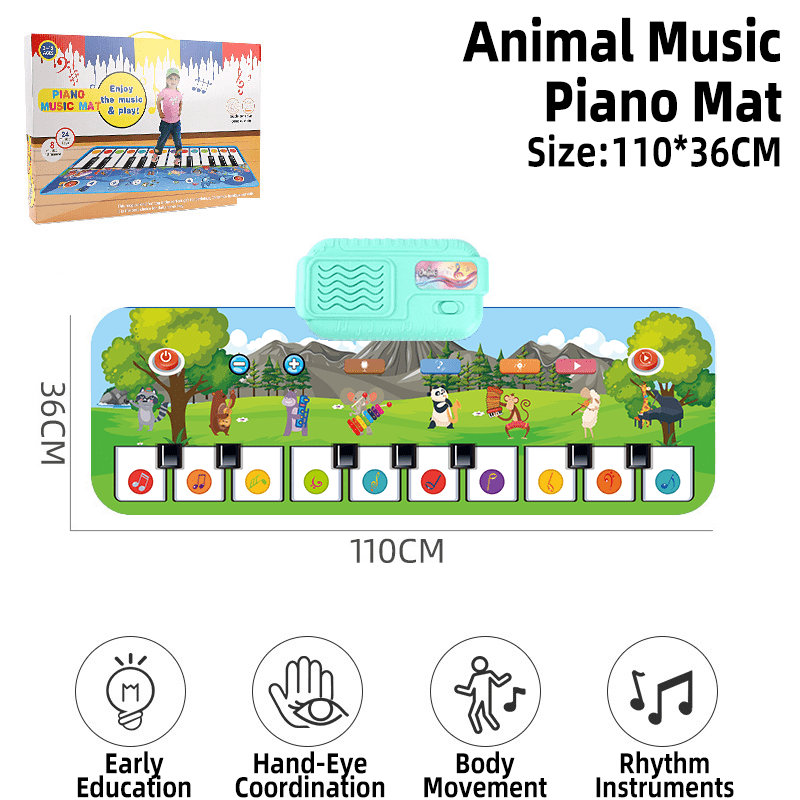 - כיף מוזיקלי ללא גבולות: שטיח פסנתר גדול המאפשר לילדים לשחק בקפיצה, ריקוד ונגינה ברגליהם, לחוויה אינטראקטיבית מלאה בכיף ויצירתיות.