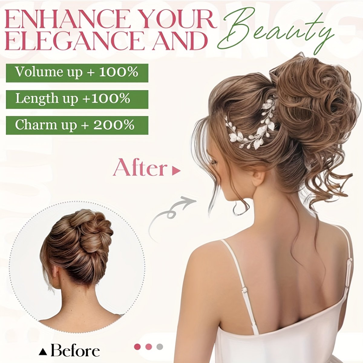 - אלגנטיות ספונטנית וקסם ייחודי: עיצוב הקוקו המרושל הגלי עם קצוות משוחררים מעניק לך מגע של אלגנטיות עכשווית וקסם בלתי נשלט, מושלם להדגשת יופייך הטבעי בכל עת.