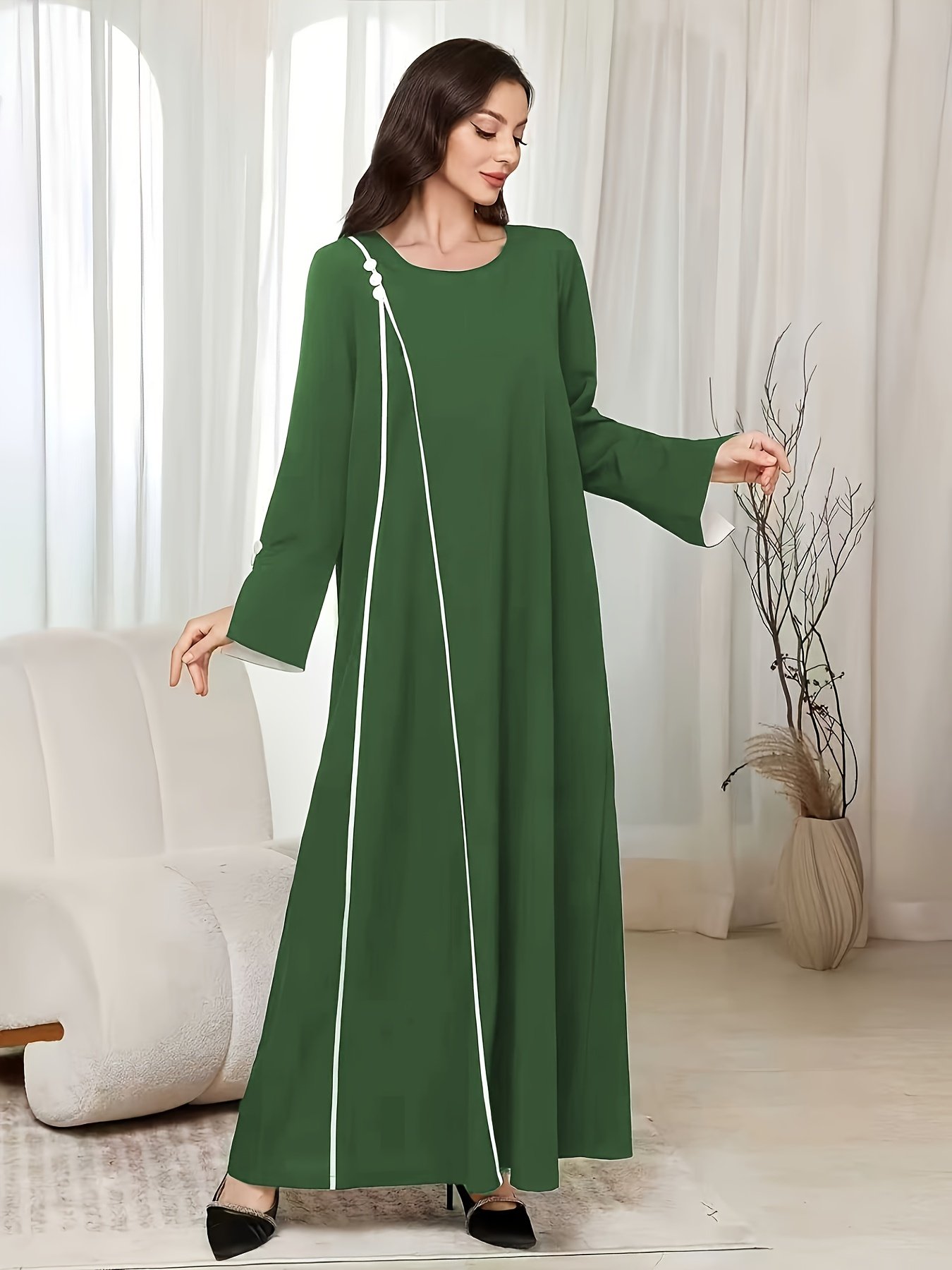 - פרטים מושכים: השמלה מקושטת בכפתורים אלגנטיים המוסיפים לה קסם מיוחד ועיצוב יוקרתי.