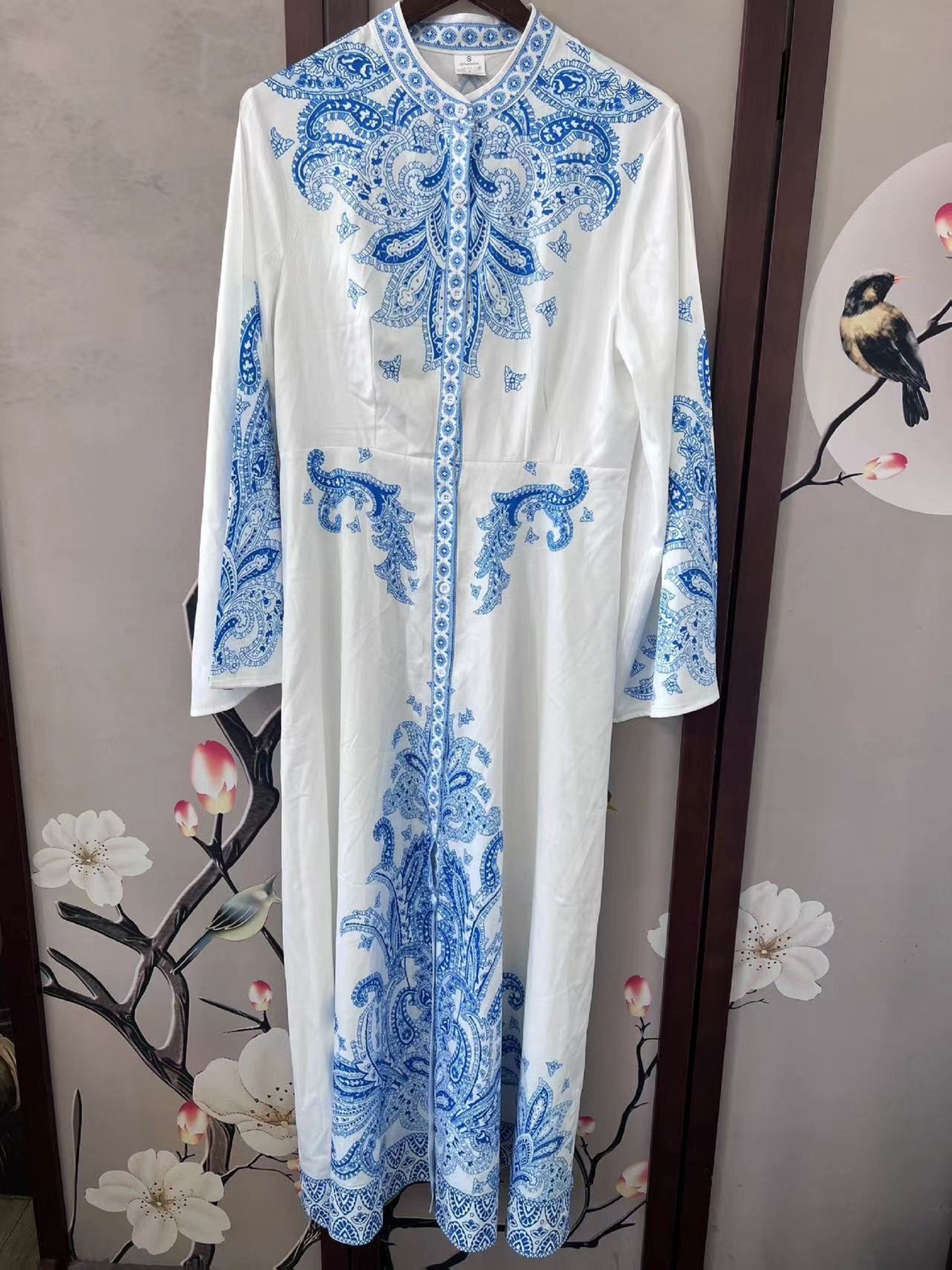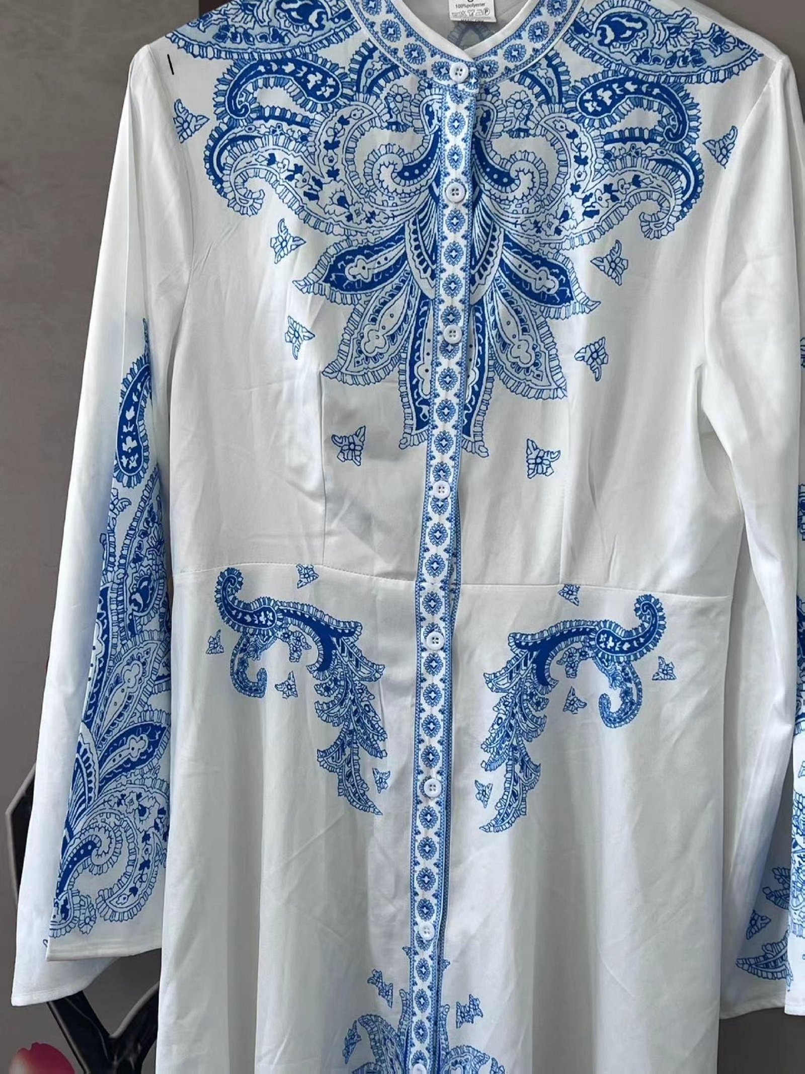 - צווארון אלגנטי ופרטי כפתורים יוקרתיים: צווארון קטן עומד המוסיף נופך וינטג'י ומיוחד, משלים על ידי פרטי כפתורים עדינים כדי להבליט את האלגנטיות הקלאסית של העיצוב.