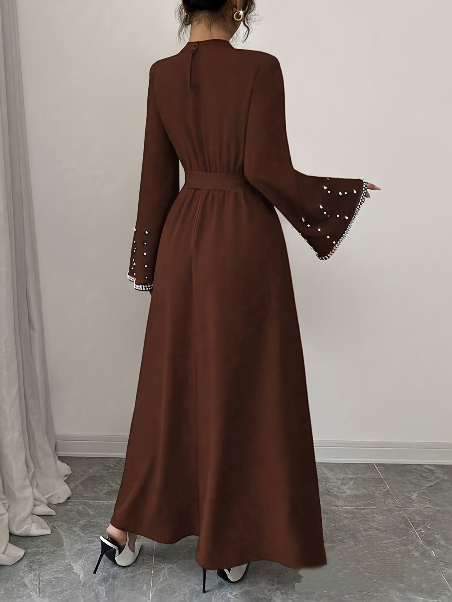 - נוחות וביטחון: שמלת מקסי הנשפכת על גופך באלגנטיות, עם פרטים חכמים לכיסוי אזור הבטן בסגנון יוקרתי, כדי שתחיי את יומך בביטחון ובנוחות מלאה.