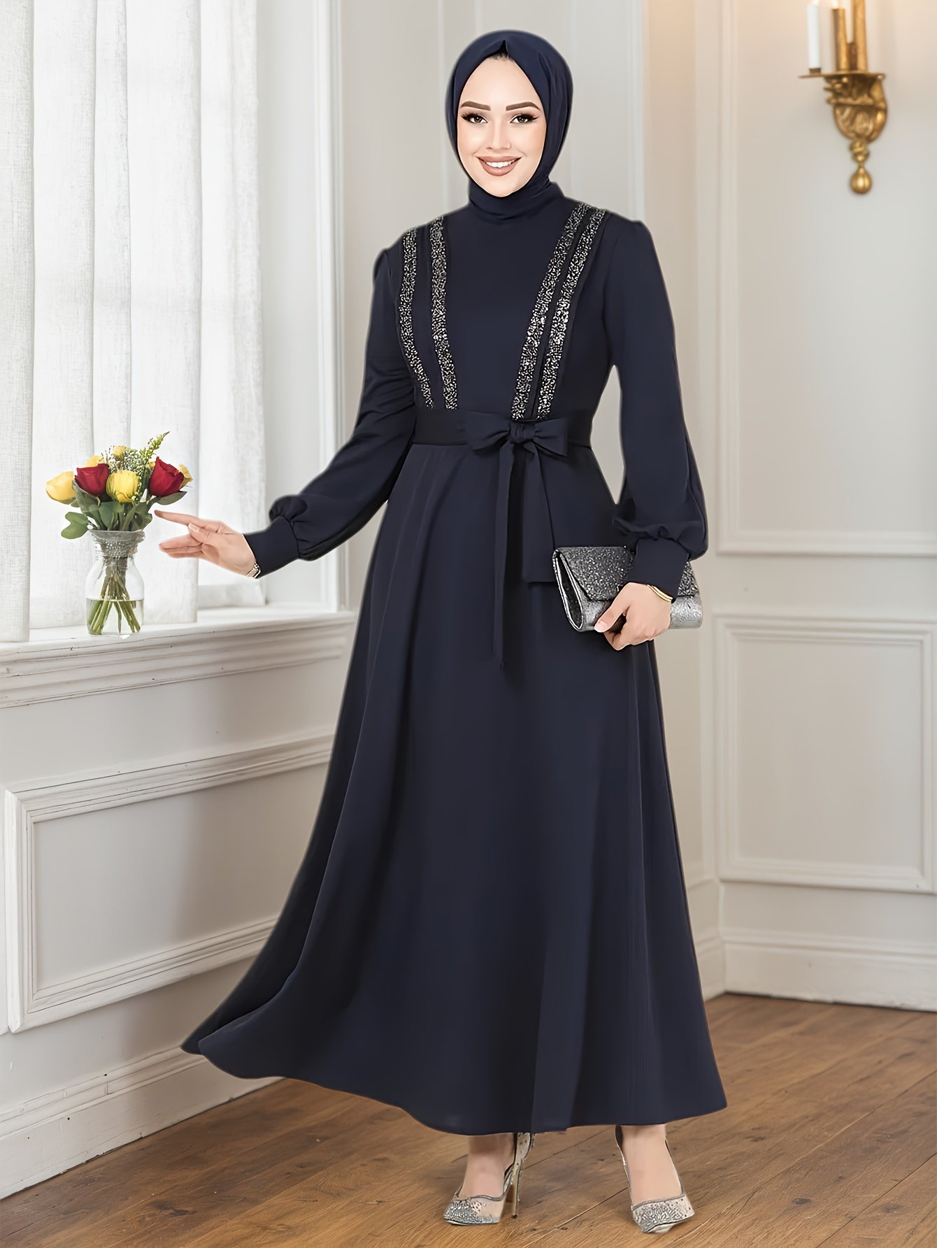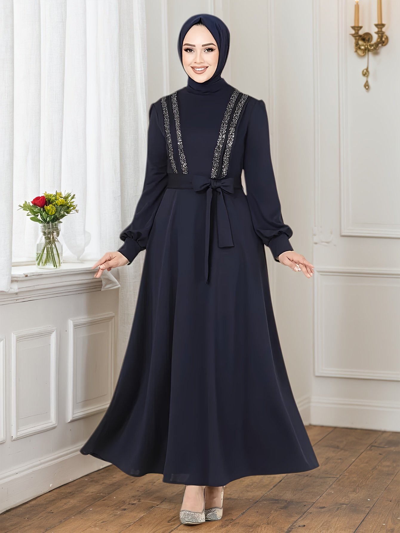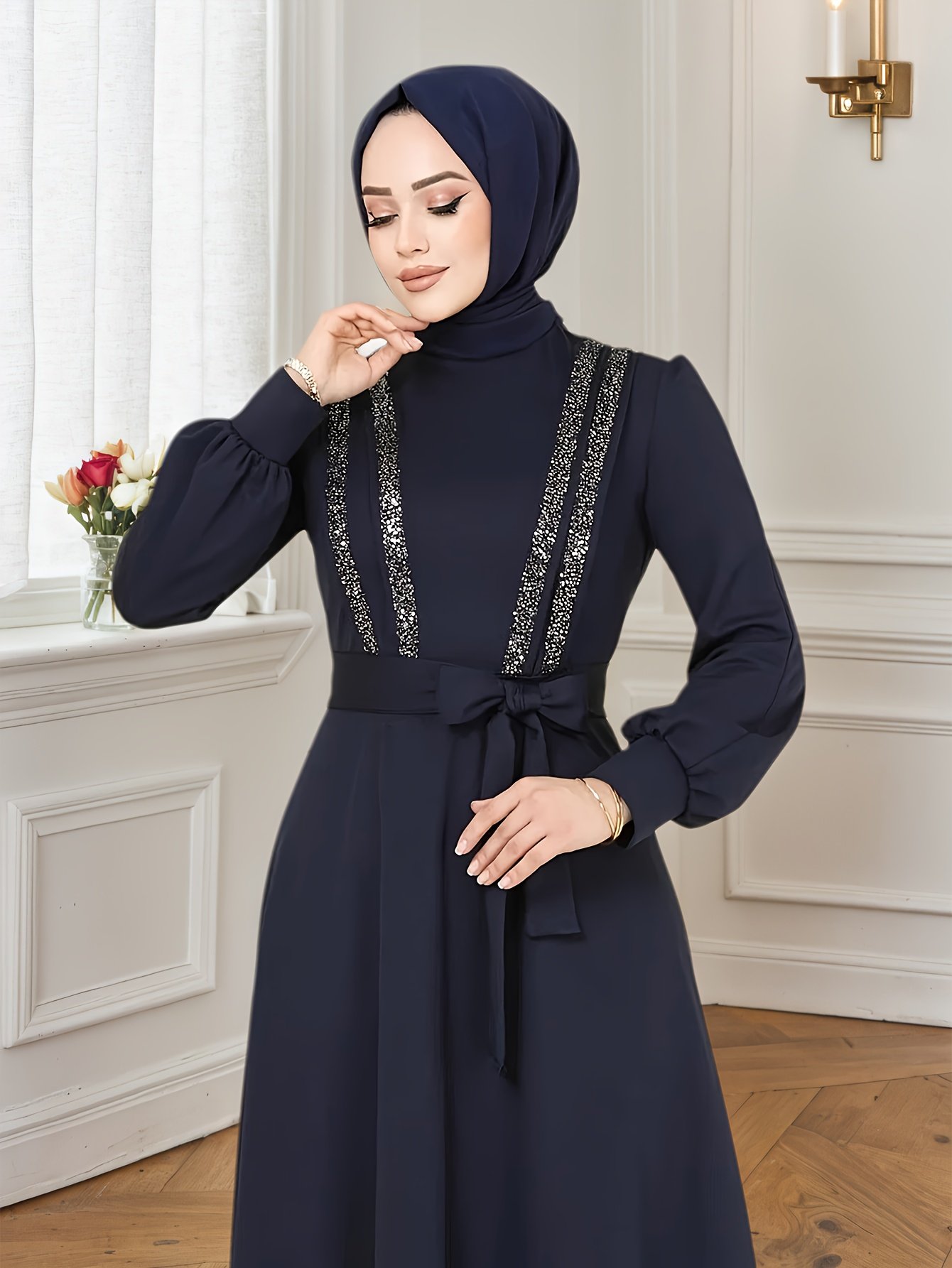 - חגורת מותן רקומה בפאייטים: פרט כובש המקשט את המותניים בנגיעות של פאייטים מבריקים, מוסיף ניצוץ מושך ומגדיר את קו גופך בחן רב.