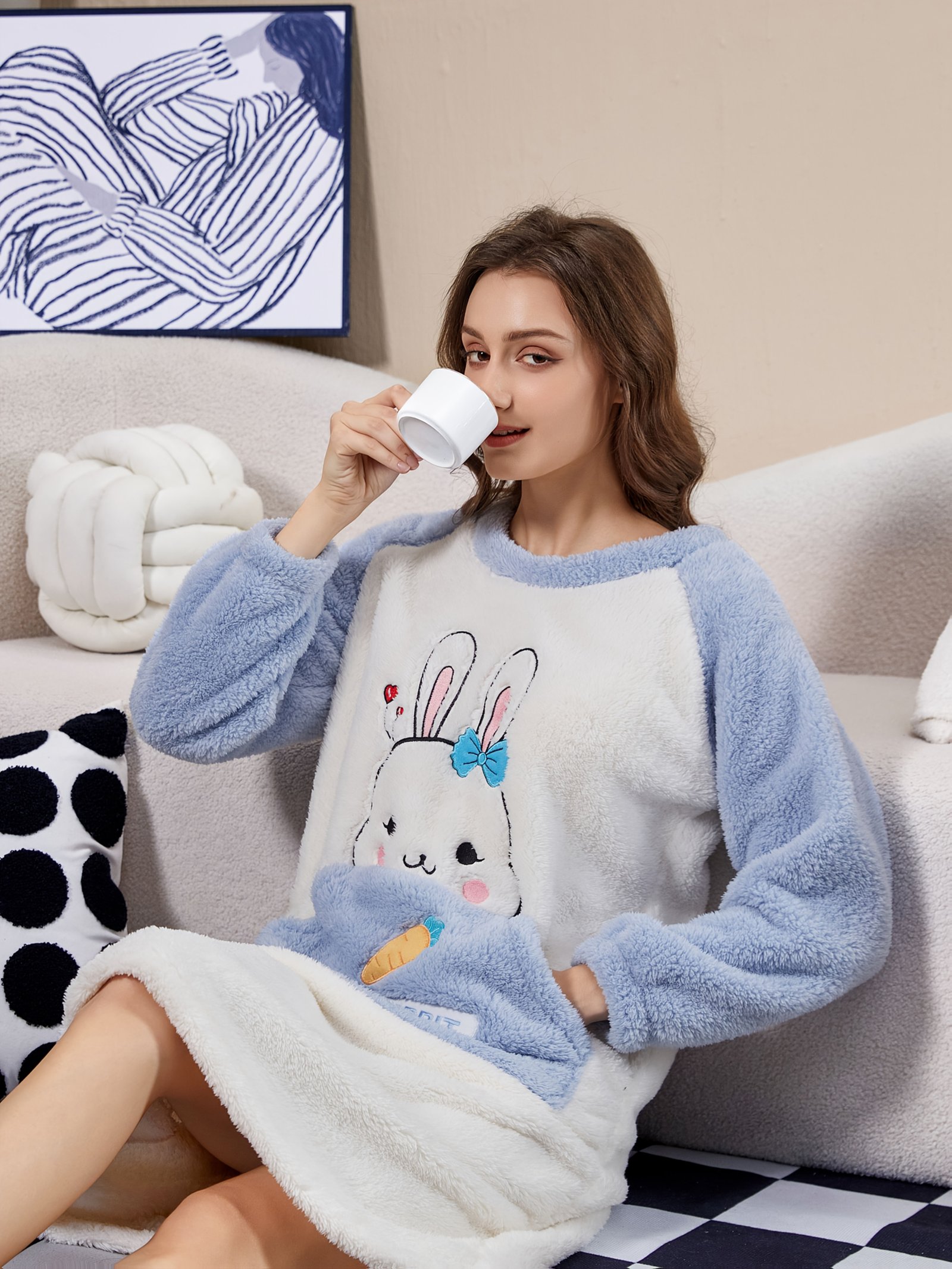 - עיצוב הארנב החמוד: קשטי את לילותייך בהדפס קריקטורה של ארנב ידידותי, המוסיף נופך של שמחה וכיף למראה הבית שלך וגורם לך להרגיש נינוחה ומאושרת.