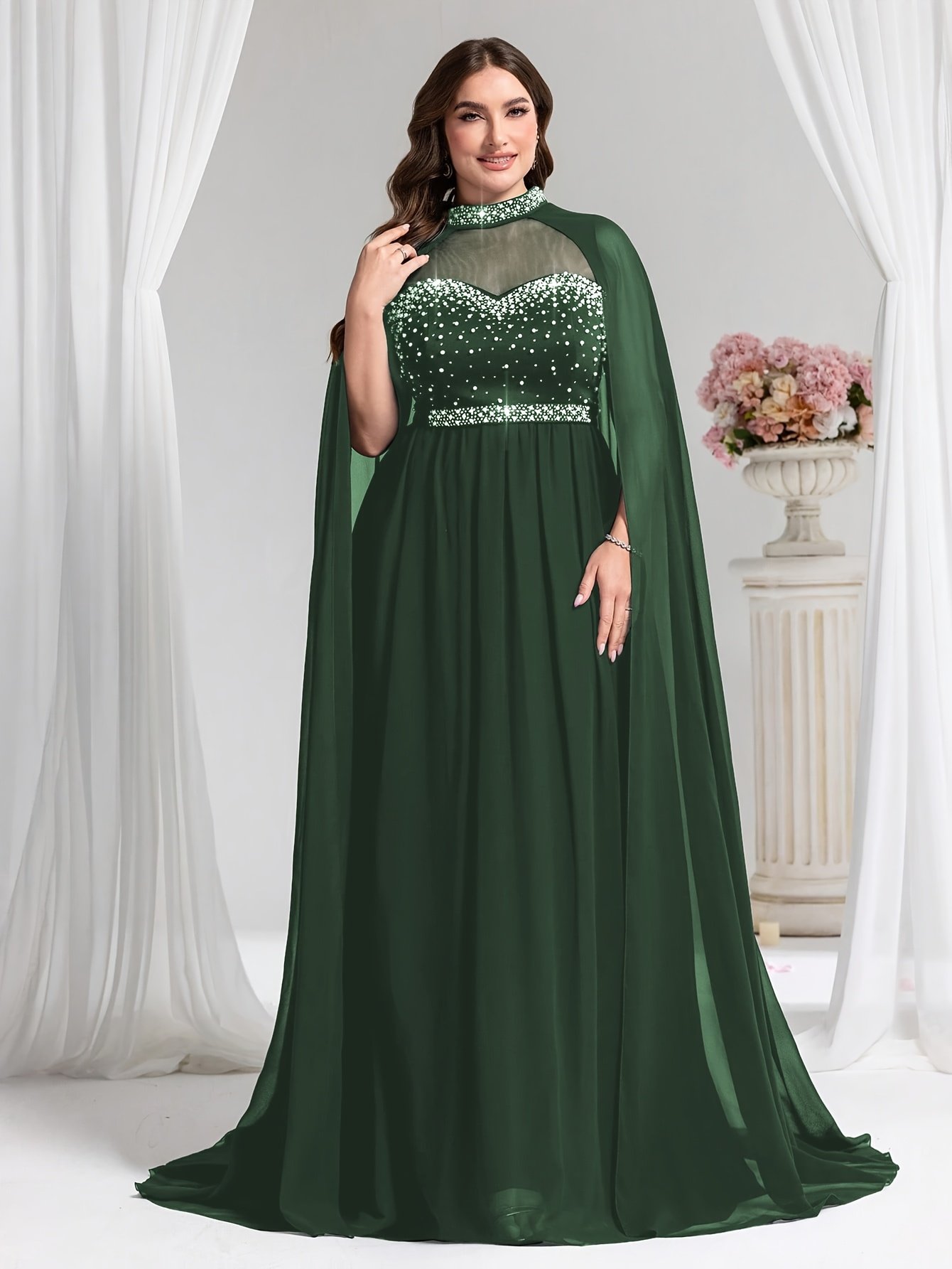 - שרוולי קאפ זורמים: שרוולים רחבים וארוכים הזורמים באלגנטיות כמו צעיף יוקרתי, מעניקים לשמלה מגע דרמטי מתוחכם ומגבירים את יוקרת העיצוב, יחד עם מתן כיסוי אלגנטי ונוח המתאים לכל האירועים.