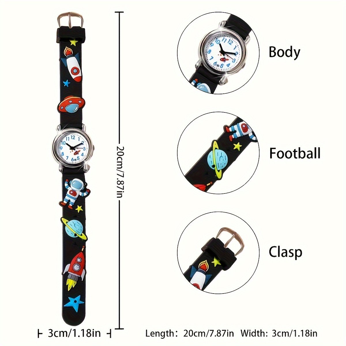 • השראה בלתי מוגבלת: עם עיצובו הייחודי בהשראת אסטרונאוטים וצבעיו המגוונים, השעון הזה יצית את הדמיון ויעודד את ילדכם לחקור עולמות חדשים של יצירתיות וכיף.