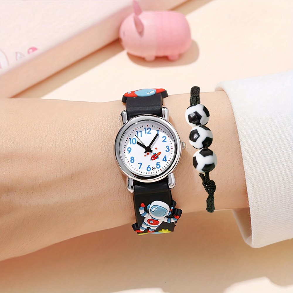 A black astronaut watch, A black astronaut watch and a black football bracelet, Two black astronaut watches