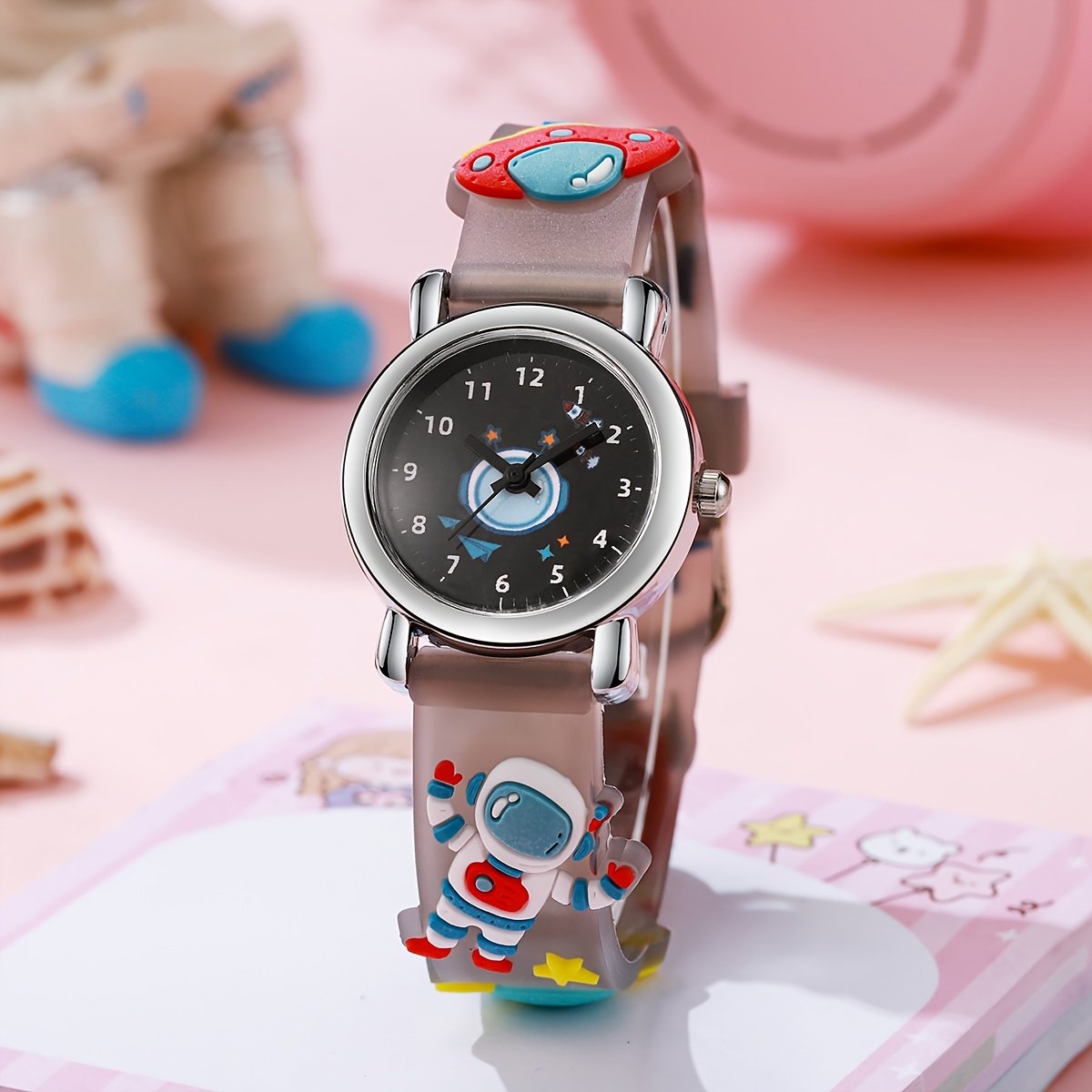 שחררו את דמיון ילדכם ותנו לו לשחות בגלקסיות החלל העצומות עם שעון החלל הקסום שלנו! שעון זה, שתוכנן במיוחד עבור גיבורים קטנים בני 3 עד 14, אינו רק כלי למדידת זמן, אלא מלווה יומיומי המשלב כיף, סטייל ואהבת חקר. מתנה מושלמת לכל ילד שחולם לחקור את החלל ולהכיר כוכבים וכוכבי לכת, המשלב עמידות ועיצוב אטרקטיבי כדי להפוך לאביזר האהוב על ילדכם.