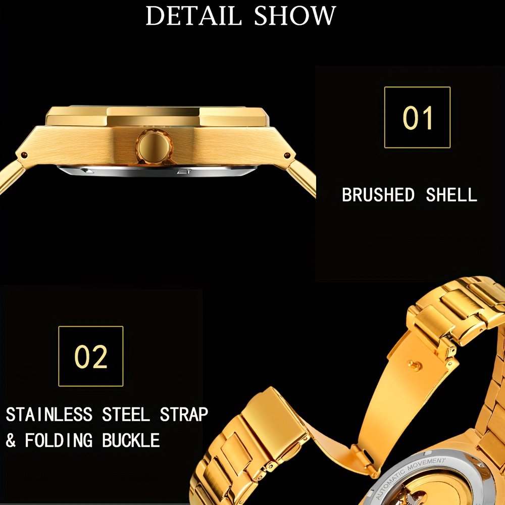 - עיצוב נועז וחומרים יוקרתיים: מארז עמיד ולוח שעונים רב-צלעי מיוצר בדיוק מפלדת אל-חלד איכותית, עם רצועה תואמת, כדי להציע לך שילוב של חוזק ויוקרה שנשמר לאורך זמן.