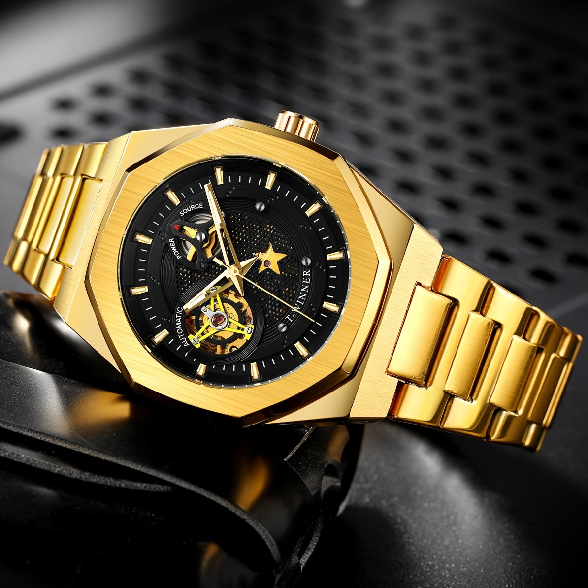גלה את יופייה של האמנות המכנית על פרק כף ידך עם השעון יוצא הדופן הזה. עיצוב המשלב אלגנטיות קלאסית ומודרנית, המשקף את אישיותך הייחודית וטעמך המשובח. זה לא רק כלי למדידת זמן, אלא יצירת אמנות פועמת חיים, עוצבה עבור הגבר שמעריך איכות ואומנות, ומחפש נגיעה של מצוינות יוקרתית.