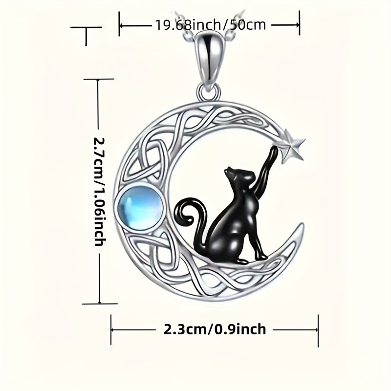 - עיצוב שובה לב וייחודי: עיצוב מרהיב זה משלב את הסמליות של החתול השחור האלגנטי עם שלוותו של הירח הסהר, משובץ באבן חן כחולה נוצצת שמושכת את העין ומוסיפה מגע של מסתורין ויוקרה.