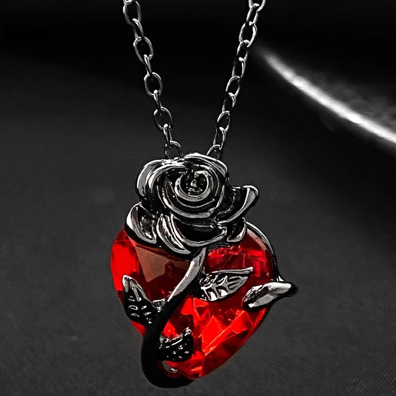 - עיצוב גותי קסום: לב ארגמני תוסס, עוטף אותו ורד אלגנטי, כדי להעניק לך מראה נועז ומיוחד המשקף את אישיותך החזקה והמסתורית.
