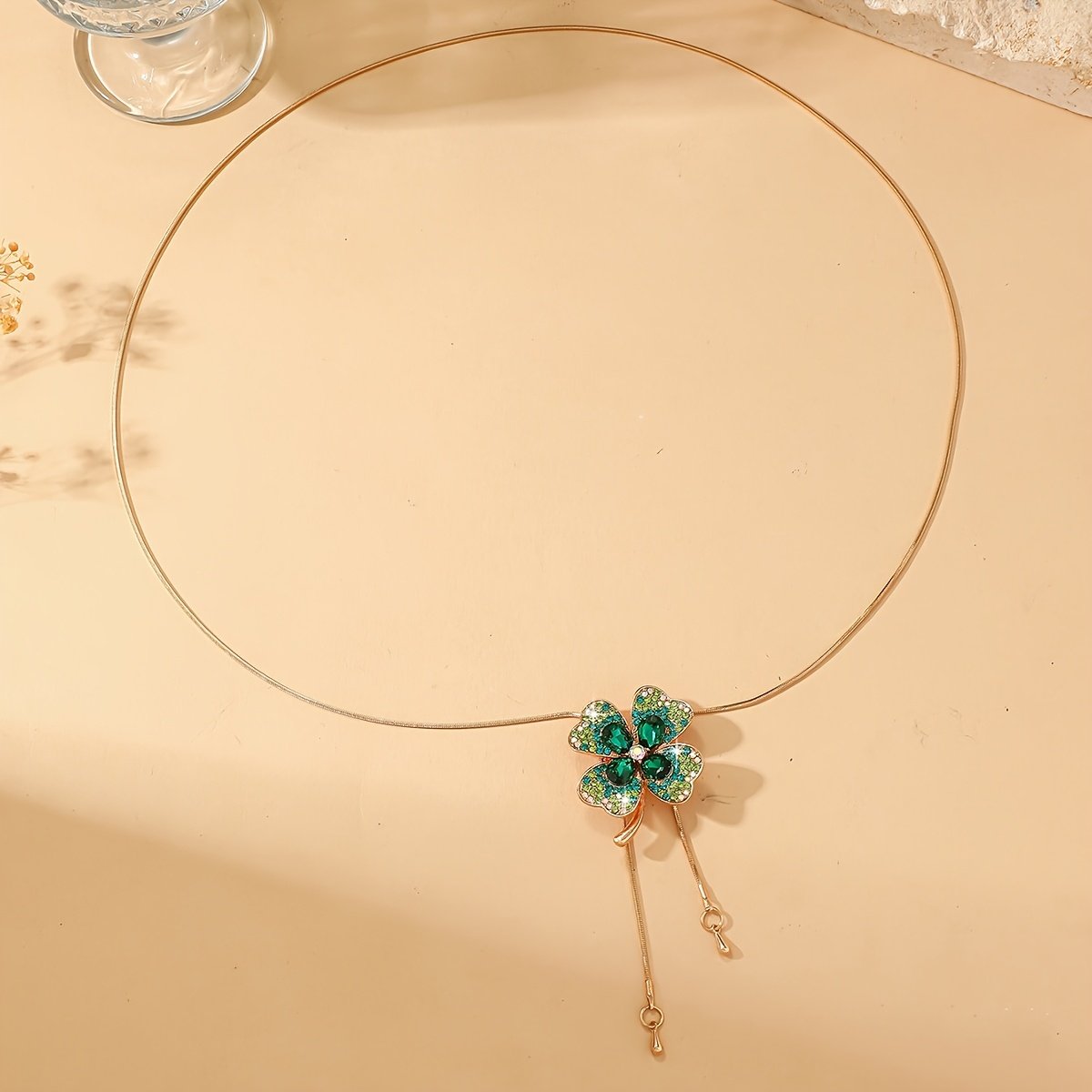 האם את מחפשת מגע יוקרתי שיאיר את מראך ויהפוך אותו לשיחת היום? גלי את שרשרת התלתן המנצנצת, המשלבת עיצוב יוקרתי וברק שובה לב כדי להעניק לך מראה בלתי נשכח בכל אירוע. יצירת אמנות שנועדה להבליט את יופייך ולהוסיף קסם מיוחד למראה שלך, בין אם את מתכוננת ליום יום או זוהרת בערב חגיגי.