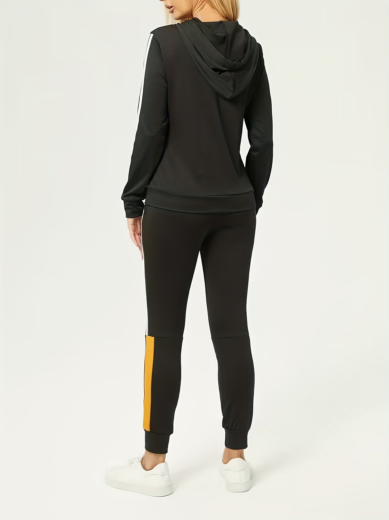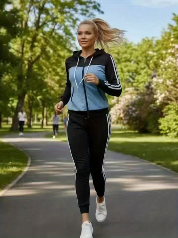 - עיצוב אופנתי ומתואם: הסט מתהדר בעיצוב "Color-Blocked" מושך בז'קט עם רוכסן מלא ובקפוצ'ון, יחד עם מכנסיים ארוכים בעלי כיסים פרקטיים, מה שמעניק לך מראה דינמי ועכשווי העוקב אחר טרנדים אופנתיים עדכניים.