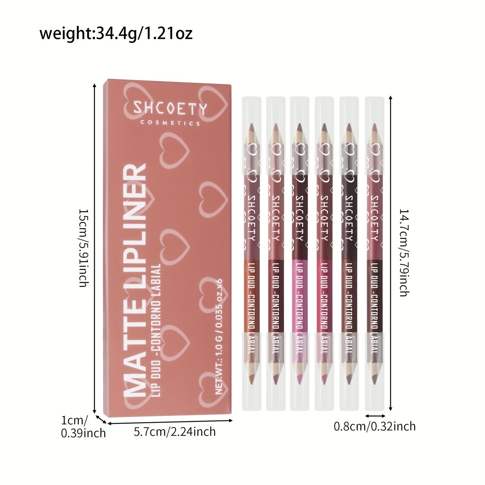 האם את חולמת על שפתיים מוגדרות בדייקנות, עם צבע מט עשיר שנשאר כל היום מבלי לזוז? להתראות לדאגות וברוכה הבאה לביטחון עצמי מוחלט! אנו מציגים לך את מארז תוחמי השפתיים הכפולים המדהים המורכב מ-6 עפרונות, המלווה המושלם שלך לכל מראה, מהבוקר ועד הערב. המארז הזה, שעוצב בקפידה, הוא הסוד שלך לשפתיים מושלמות ומושכות בכל פעם.