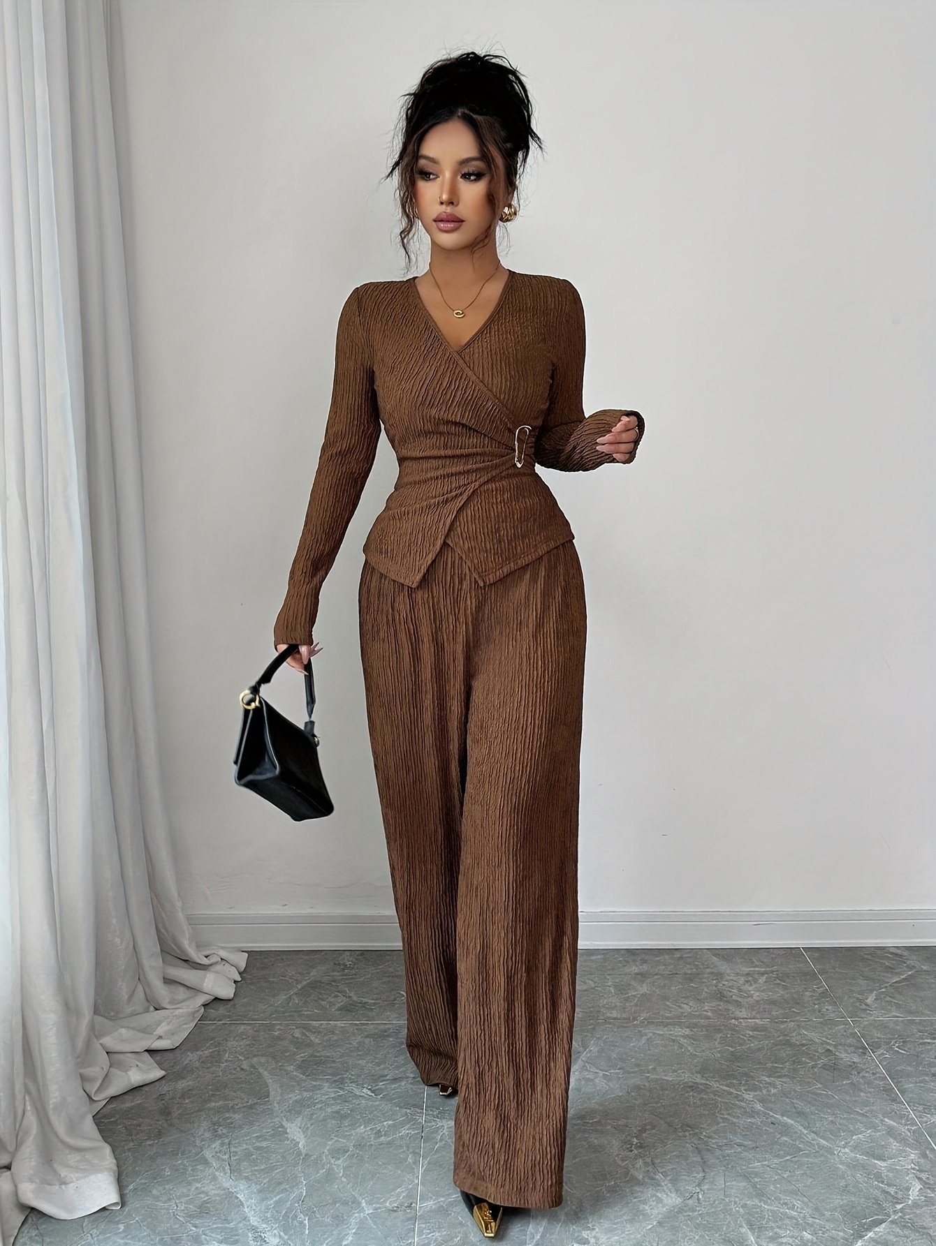 - עיצוב מודרני ואלגנטי: בעל פרטים א-סימטריים וצווארון בצורת V המוסיפים נופך של יוקרה וקסם עכשווי, כדי שתבלטי באלגנטיות מרשימה ומיוחדת בכל מקום אליו תלכי.