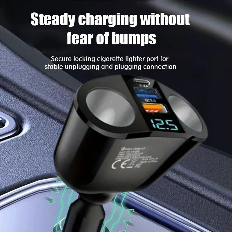 - גמישות אולטימטיבית 5 ב-1: הפכו את שקע מצית הרכב הבודד שלכם למרכז כוח משולב. מכשיר חכם זה מספק לכם 3 יציאות הרחבה למצת הרכב ו-2 יציאות טעינת USB (כולל Type-C PD ו-QC3.0) להפעלת וטעינת עד 5 מכשירים בו זמנית, ללא כל פשרה על מהירות או ביצועים.