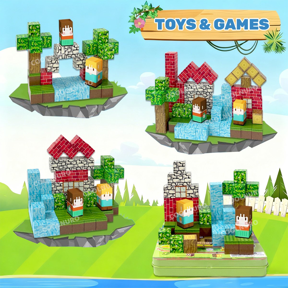 - אחסון אלגנטי ונייד: מגיעים בקופסת מתכת עמידה ואטרקטיבית בעיצוב יער חלומי, המבטיחה אחסון והובלה קלים, ושומרת על הקוביות מאורגנות ומוכנות להרפתקה הבאה.