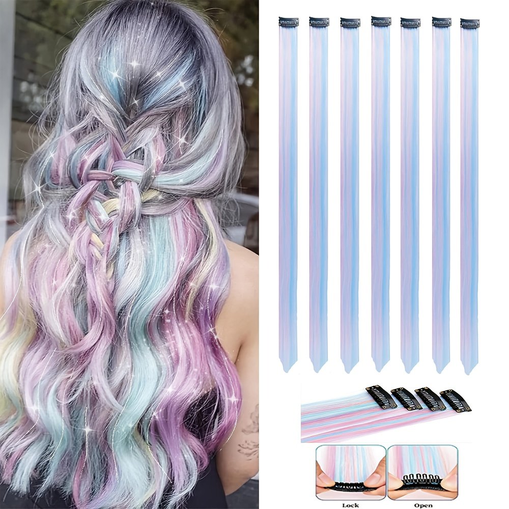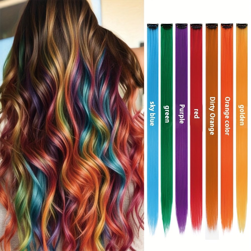 טבלי בעולם הצבע והקסם עם תוספות שיער קליפס בצבעי הקשת המהפנטים! סט 7 היחידות הזה עוצב כדי להעניק לך מראה ייחודי וזוהר תוך דקות ספורות, בין אם את מתכוננת למסיבה פרועה, לפסטיבל מלא חיים, או רוצה להוסיף נופך נועז לתסרוקת היומיומית שלך. תני לשיער שלך לשקף את אישיותך התוססת ולמשוך מבטים לכל מקום שאליו תלכי!