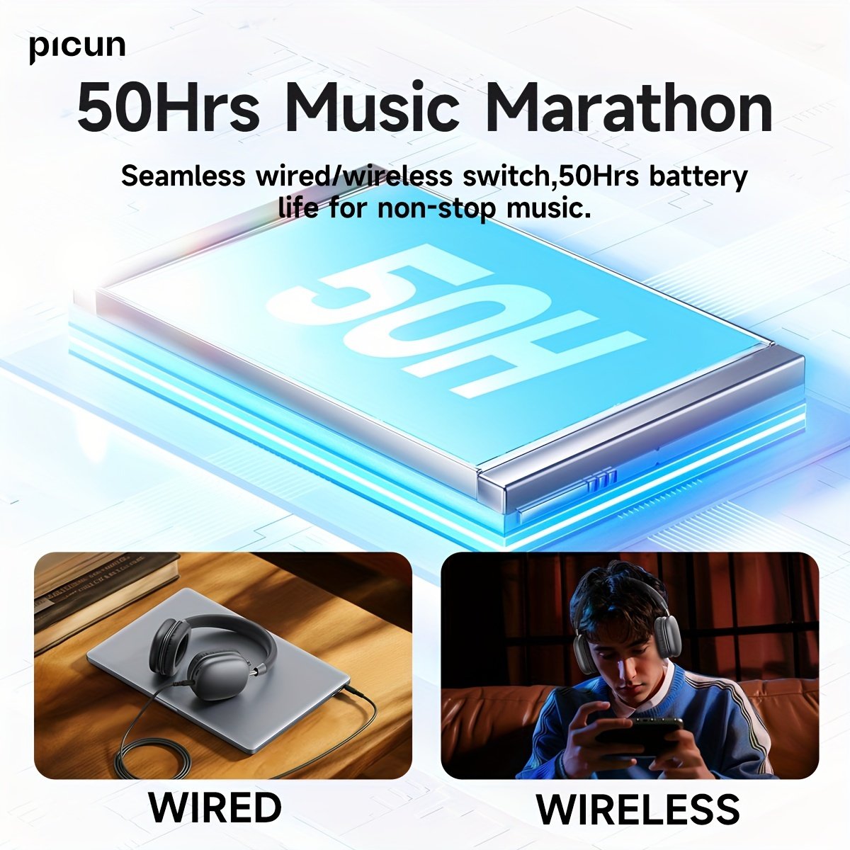 • סוללה עוצמתית המחזיקה 50 שעות: תהנה מהאזנה רציפה במשך שעות ארוכות ללא דאגות, אידיאלי לנסיעות, עבודה ובידור יומיומי.